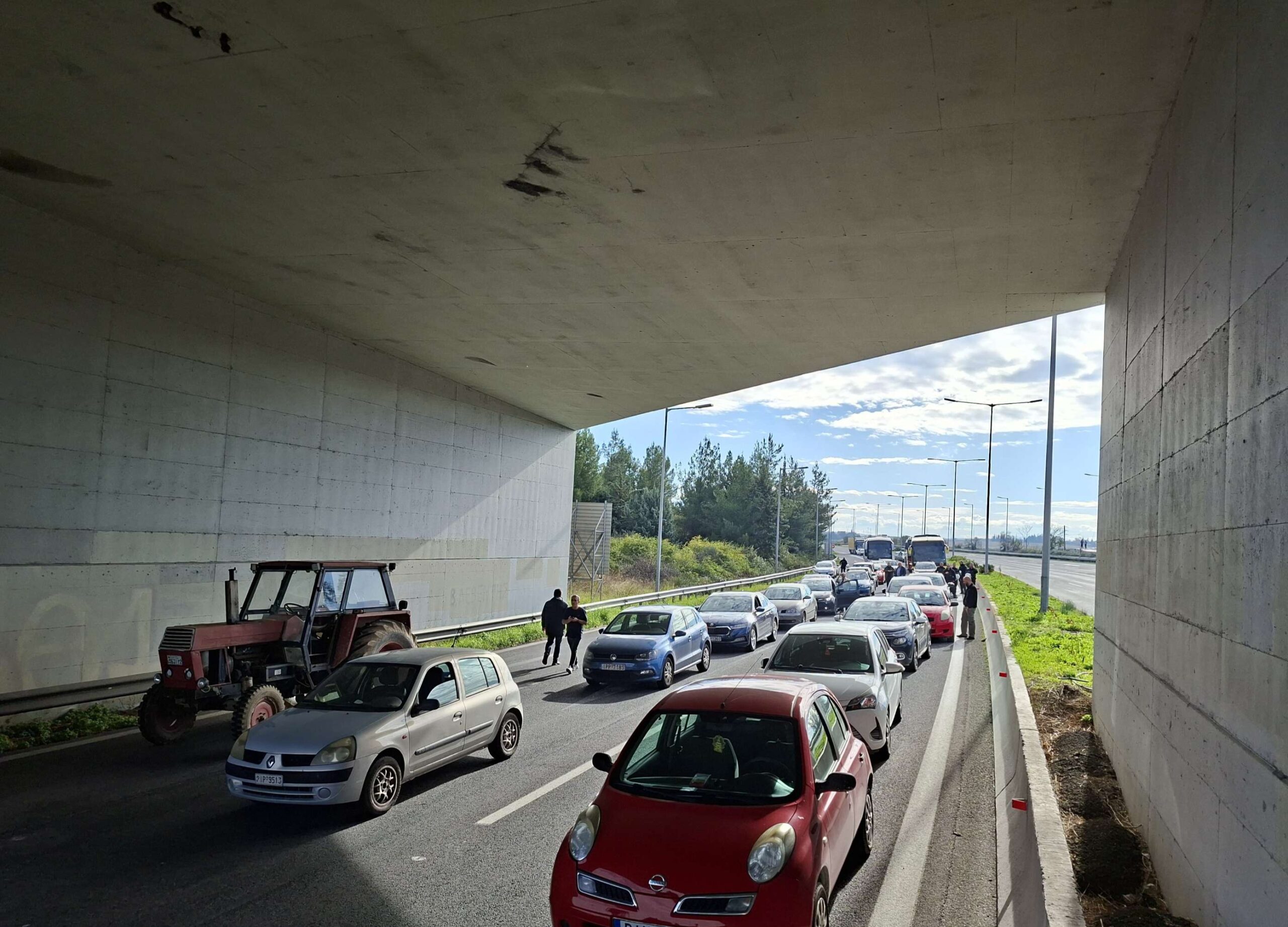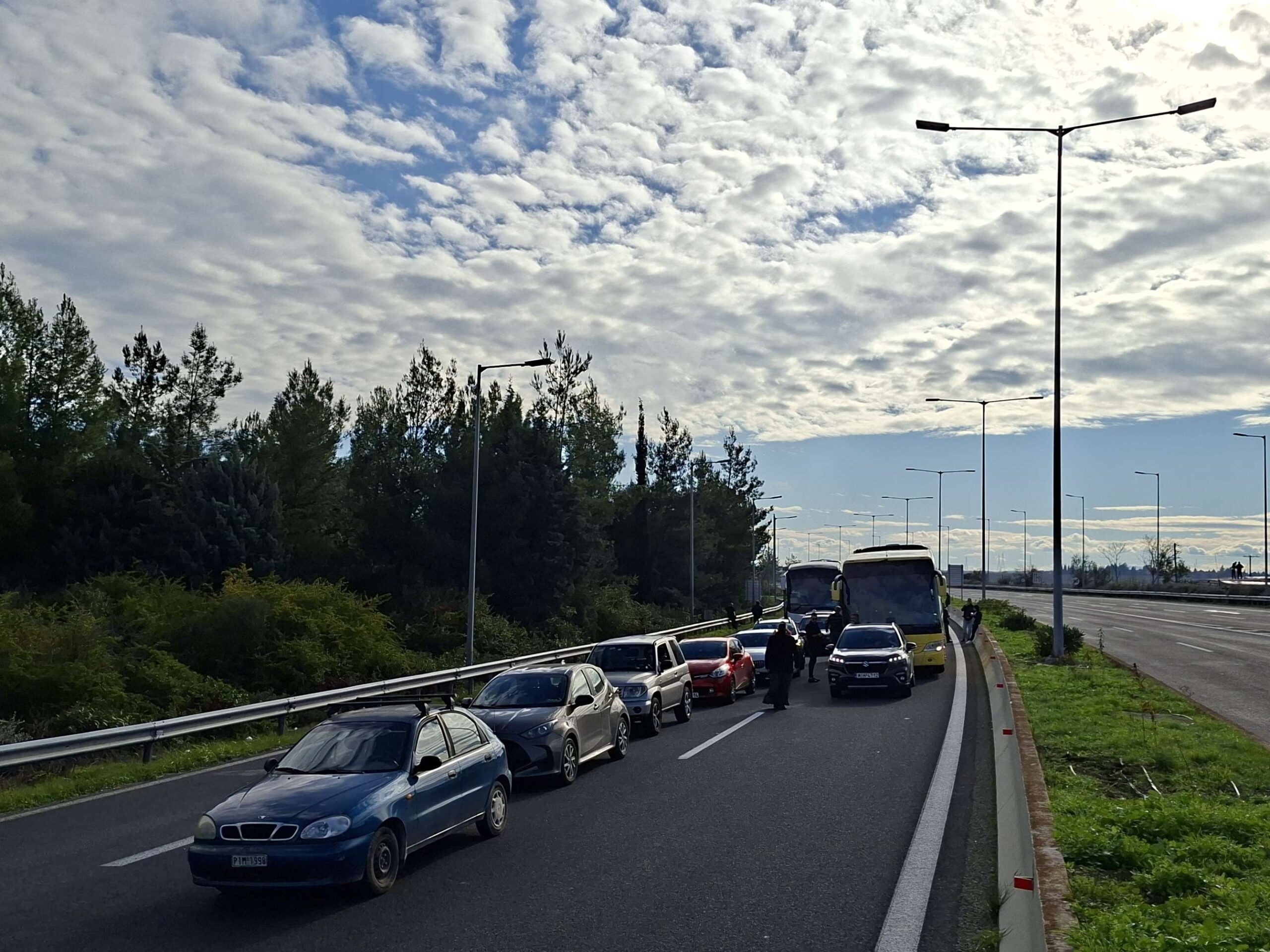 Αυτήν τη στιγμή ελευθερώθηκε η ΛΕΑ και όλα τα εγκλωβισμένη αυτοκίνητα και λεωφορεία πέρασαν από το σημείο του μπλόκου.