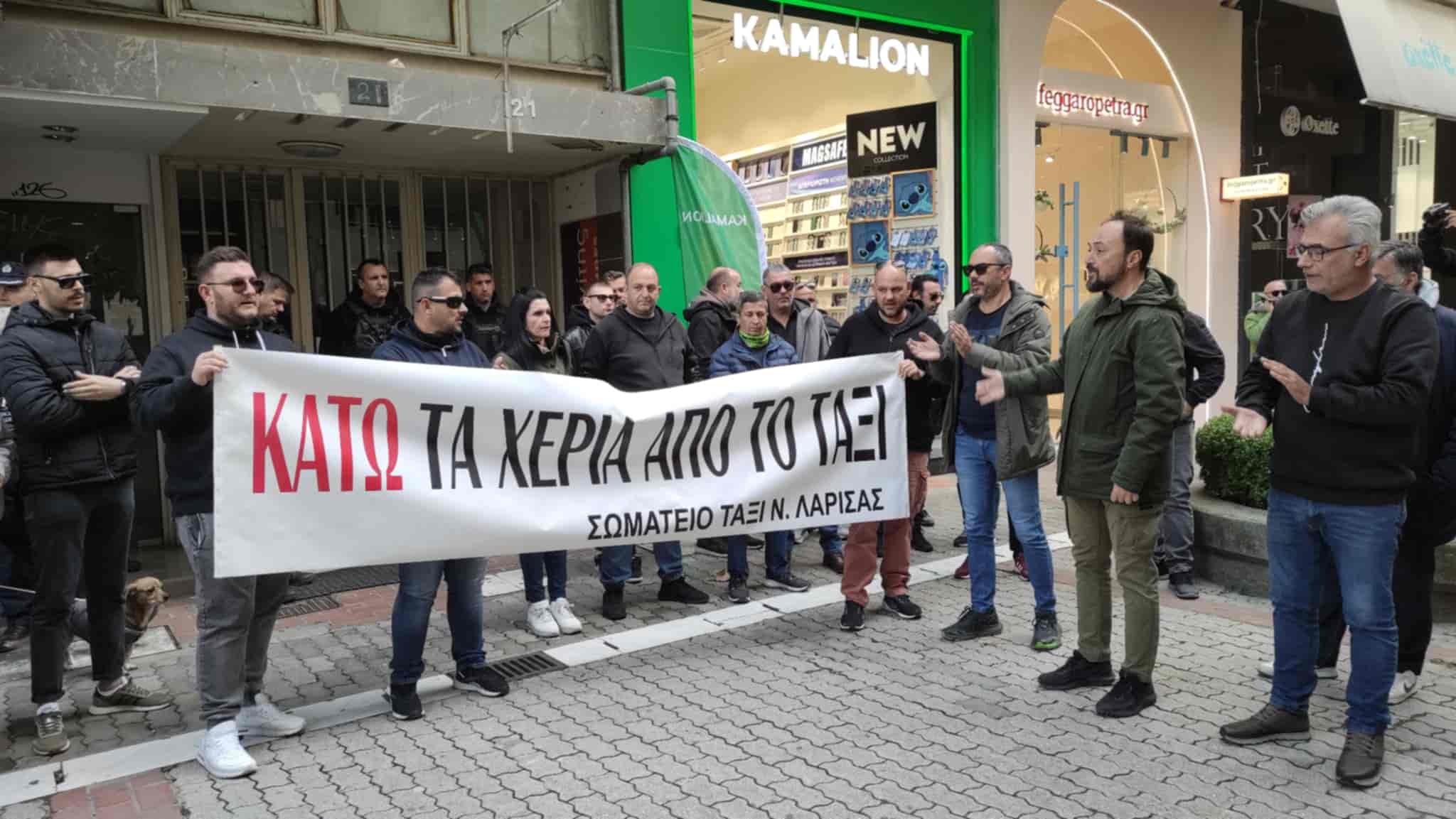 Ο Πρόεδρος του Σωματείου Ταξί Ν. Λάρισας, κ. Νίκος Πιπερίδης απαρίθμησε τα βασικά αιτήματα και δήλωσε μεταξύ άλλων ότι δεν θα βγαίνανε στους δρόμους αν θεωρούσανε ότι τα αιτήματα αυτά δεν είναι δίκαια.