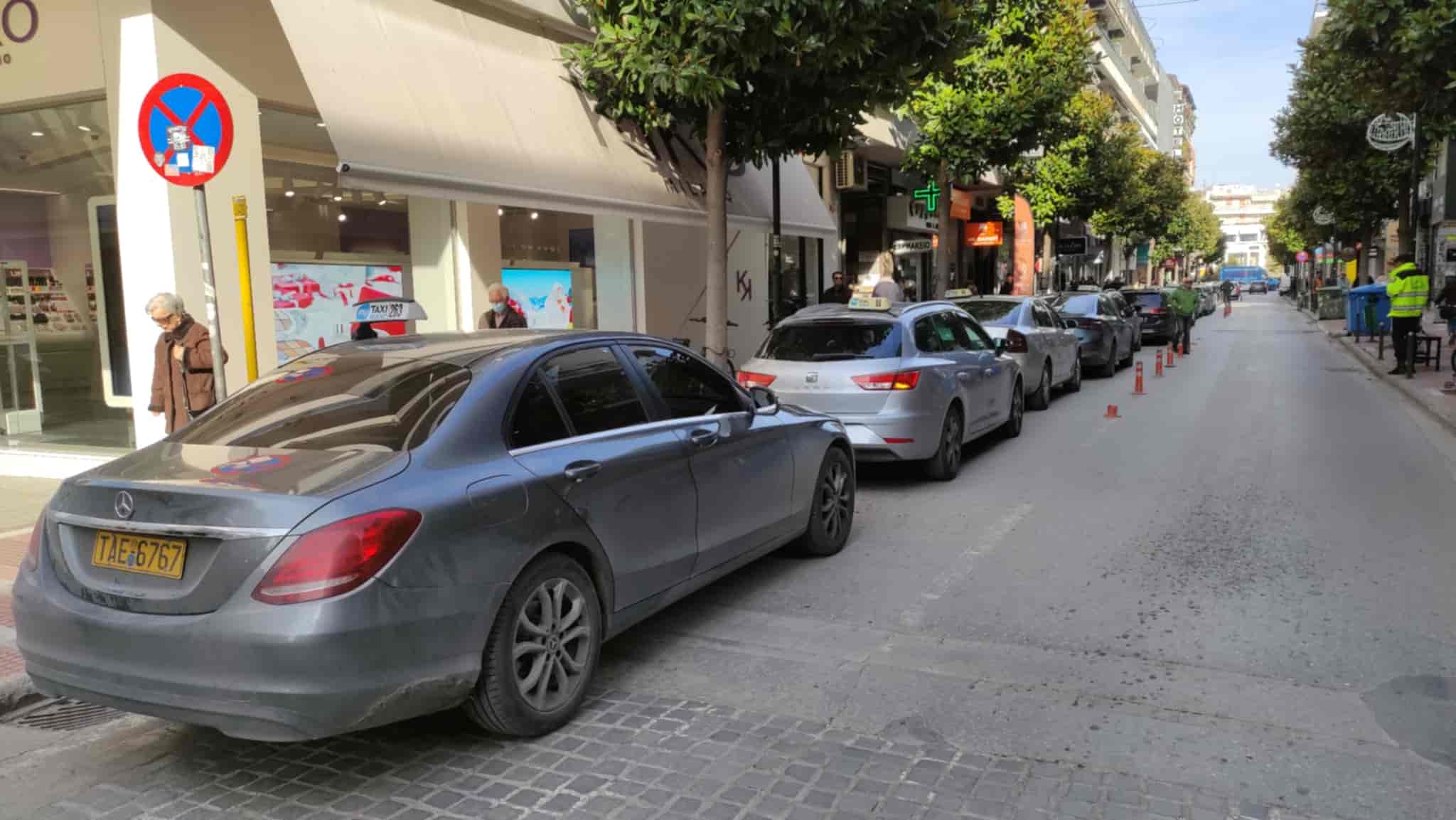 Τα ταξί πέρασαν από κεντρικές οδούς όπως ήταν η Παναγούλη και από εκεί κατευθύνθηκαν στο γραφείο του υφυπουργού Αγροτικής Ανάπτυξης και Τροφίμων, κ. Χρήστου Κέλλα, όπου και επίδοσαν το ψήφισμα των αιτημάτων τους.