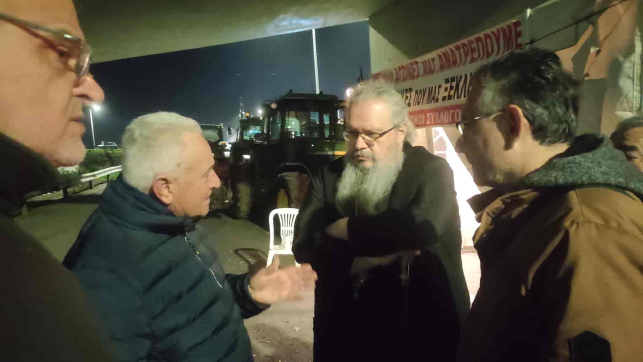 Το μπλόκο της Νίκαιας επισκέφθηκε το απόγευμα της Πέμπτης ο Μητροπολίτης Λαρίσης κ. Ιερώνυμος συνομιλώντας με τους αγρότες, και αναγνωρίζοντας τον δίκαιο αγώνα τους.