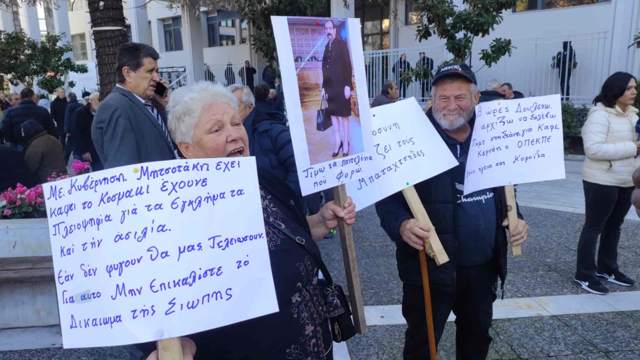 Με συνθήματα και πλακατ στα χέρια άνθρωποι όλων των ηλικιών, έσπευσαν στο σημείο για να εκφράσουν την αλληλεγγύη τους και να βρεθούν στο πλευρό των αγροτών – που όπως λένε- δικάζονται άδικα.