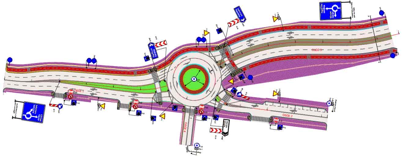 - Καρδίτσης – Σαρίμβεη: Διαμόρφωση κυκλικού κόμβου στον υφιστάμενο ισόπεδο κόμβο: Το βασικότερο μειονέκτημα της υφιστάμενης διασταύρωσης σε επίπεδο οδικής ασφάλειας, οφείλεται στην απουσία φωτεινού σηματοδότη και στη σύγχυση που προκαλείται στους οδηγούς που εισέρχονται στην πόλη της Λάρισας. Στην υπό μελέτη περιοχή έχει σημειωθεί πληθώρα τροχαίων ατυχημάτων, λόγω ανάπτυξης υψηλών ταχυτήτων και μεγάλης ευθυγραμμίας. Σε όλα τα σημεία πρόσβασης στον υφιστάμενο ισόπεδο κόμβο, η κυκλοφοριακή ρύθμιση υλοποιείται εξολοκλήρου με ρυθμιστικές πινακίδες.