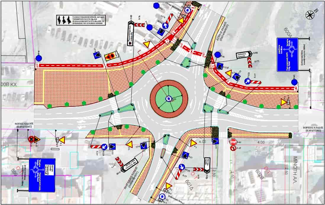 - Καρδίτσης – Παπανδρέου: Ο σηματοδοτούμενος κόμβος στη συμβολή των συγκεκριμένων οδών μετατρέπεται σε κυκλικό κόμβο, ο οποίος διευθετεί τις πραγματοποιούμενες κινήσεις των οχημάτων με μικρότερες καθυστερήσεις, βελτιώνει την οδική ασφάλεια στον κόμβο καθώς μειώνεται δραστικά η ταχύτητα κίνησης των οχημάτων και προστατεύονται οι κινήσεις των πεζών (μέσω σηματοδοτούμενων πεζοδιαβάσεων) και συντελεί στην αισθητική αναβάθμιση της περιοχής.