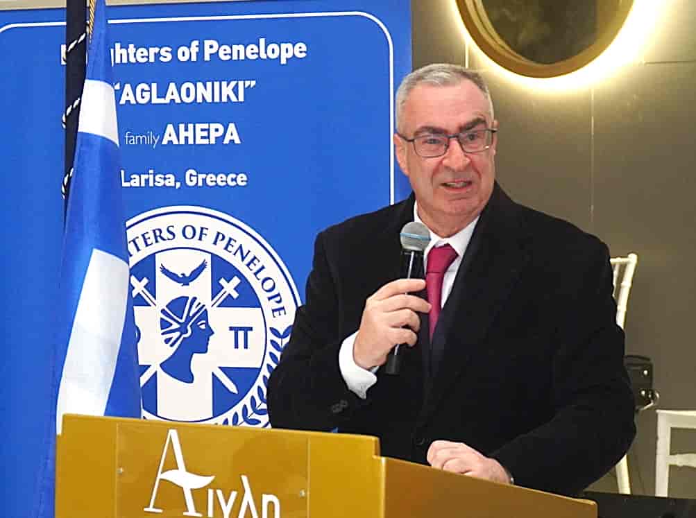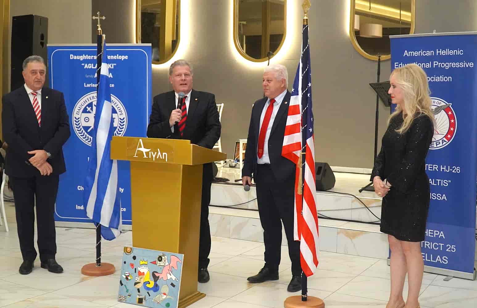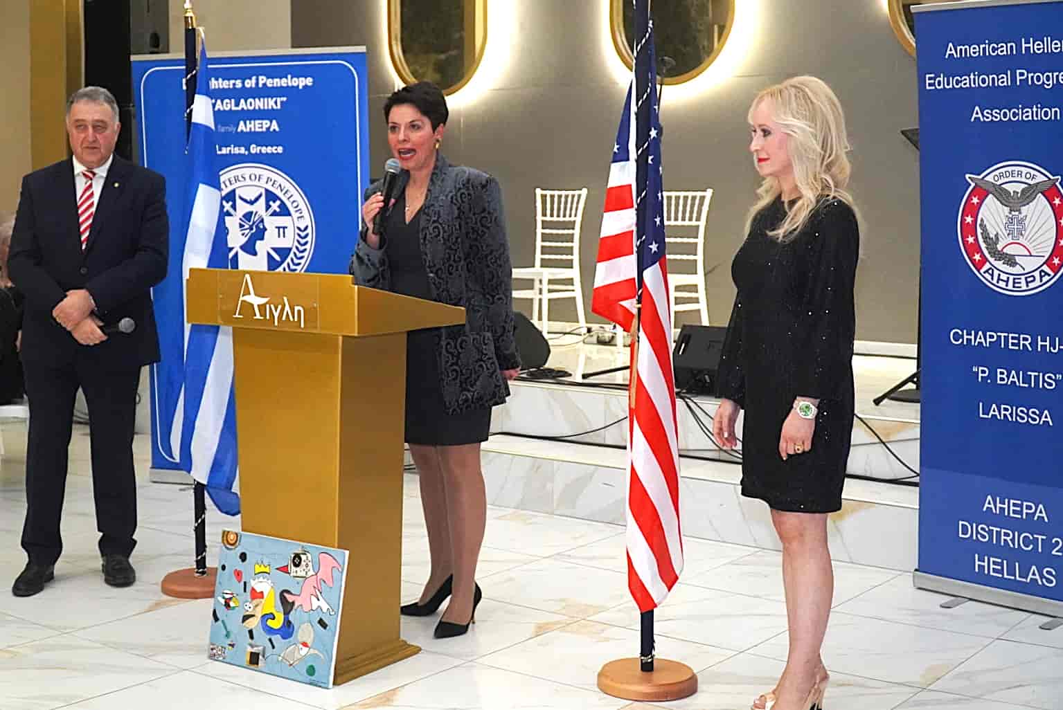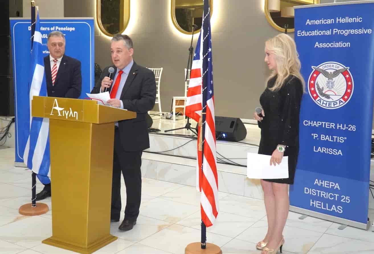 Στον χαιρετισμό τους οι πρόεδροι των Τμημάτων Λάρισας AHEPA HJ 26 “Peter Baltis” κος Βασίλης Καραβασίλης και Doughters of Penelope “Aglaoniki” κα Ρουμπίνη Λεονταρή αναφέρθηκαν στο έργο που επιτελούν τα τμήματα και υποσχέθηκαν να συνεχίσουν με τον ίδιο ζήλο και διάθεση για την επίτευξη και νέων στόχων προς όφελος του κοινωνικού συνόλου, πιστοί στις αρχές και τους σκοπούς της AHEPA. Ιδιαίτερα υπογράμμισαν τη σημασία της συλλογικής συμμετοχής και της έμπρακτης στήριξης των ευάλωτων κοινωνικών ομάδων, ιδιαίτερα σε μια περίοδο αυξημένων αναγκών.