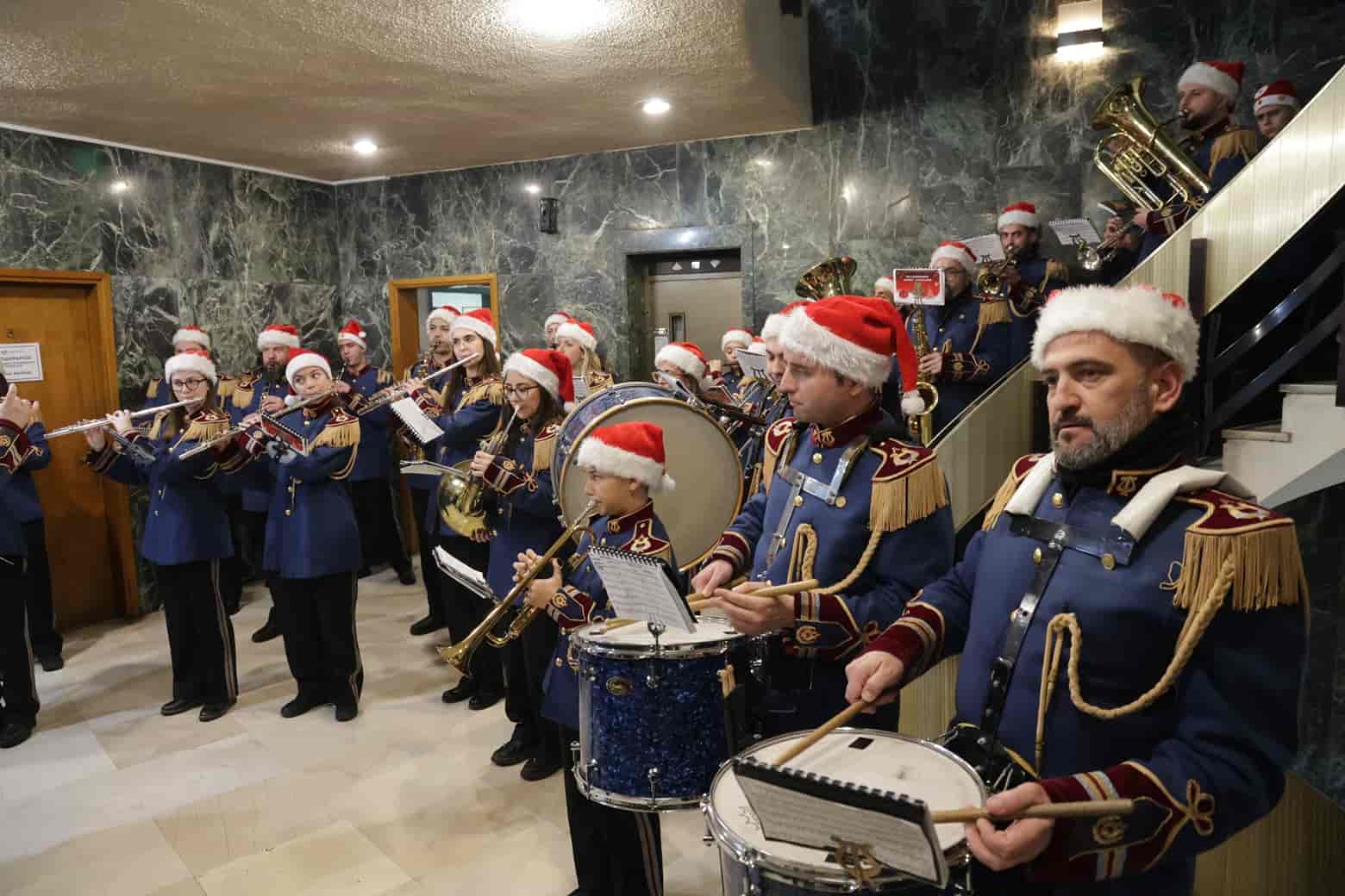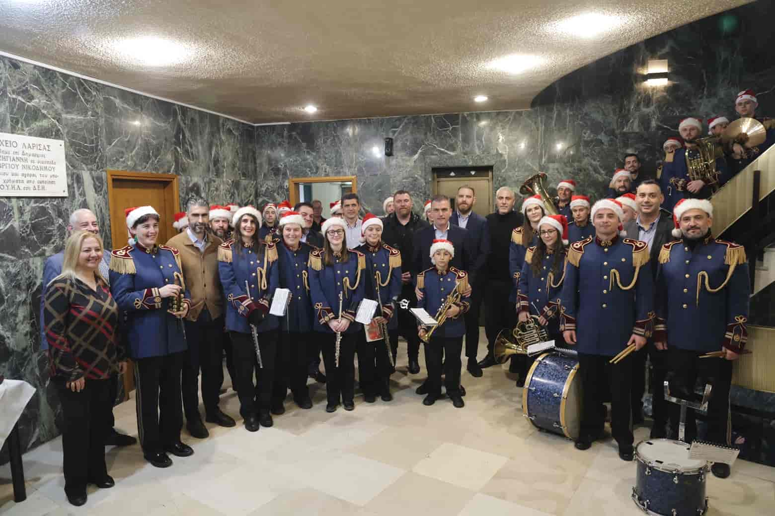 Παρουσία στελεχών και υπαλλήλων του Δήμου Λαρισαίων, η Φιλαρμονική Ορχήστρα του ΔΩΛ έβαλε την τελευταία “πινελιά” στην υποδοχή φορέων, σχολείων, συλλόγων, αλλά και απλών πολιτών, που σήμερα αλλά και όλες τις προηγούμενες ημέρες έσπευσαν για να τραγουδήσουν και να ανταλλάξουν γιορτινές ευχές με τον Δήμαρχο Λαρισαίων, κ.Θανάση Μαμάκο, τους Αντιδημάρχους και μέλη του Δημοτικού Συμβουλίου.