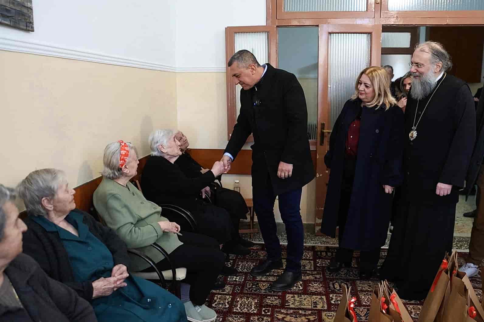 Ο κ. Κουρέτας συνομίλησε με όλους τους ηλικιωμένους φιλοξενούμενους, άκουσε προσωπικές τους ιστορίες, αντάλλαξε ευχές και μοίρασε δώρα. Παράλληλα, ευχαρίστησε το προσωπικό του γηροκομείου για την αφοσίωση και την καθημερινή φροντίδα των ηλικιωμένων.