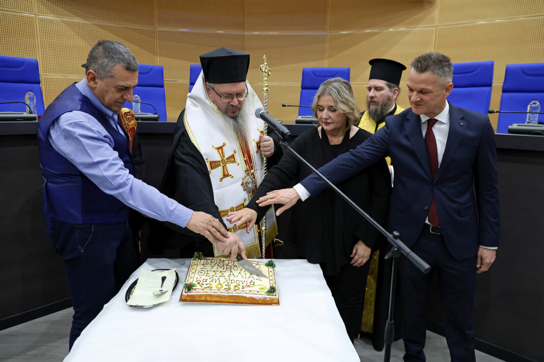 Σε εορταστικό κλίμα πραγματοποιήθηκε, σήμερα (Δευτέρα) μεσημέρι, πριν την συνεδρίαση της ειδικής λογοδοσίας της Περιφερειακής Επιτροπής, η κοπή της πρωτοχρονιάτικης πίτας του Περιφερειακού Συμβουλίου Θεσσαλίας, με τις ευλογίες του Σεβ. Μητροπολίτη Λαρίσης και Τυρνάβου κυρίου Ιερωνύμου.
