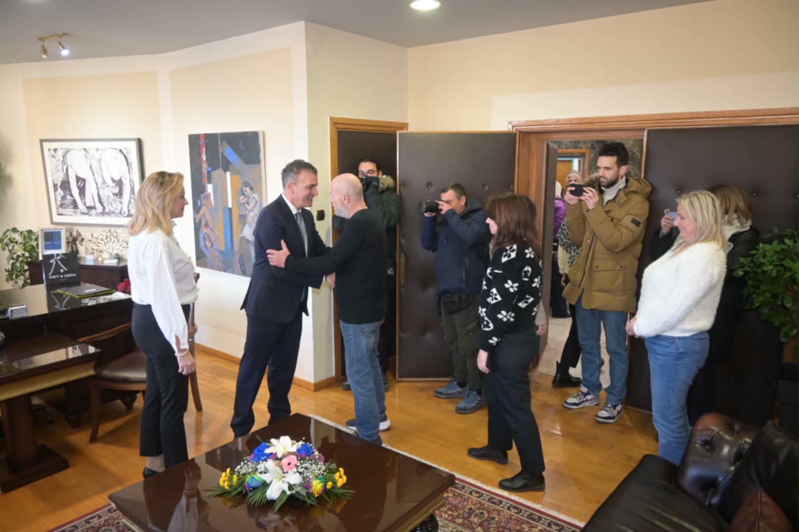 Έτσι, λοιπόν, πλήθος κόσμου έσπευσε απο σημερα Παρασκευή στο γραφείο του για να του ευχηθεί Χρόνια πολλά.