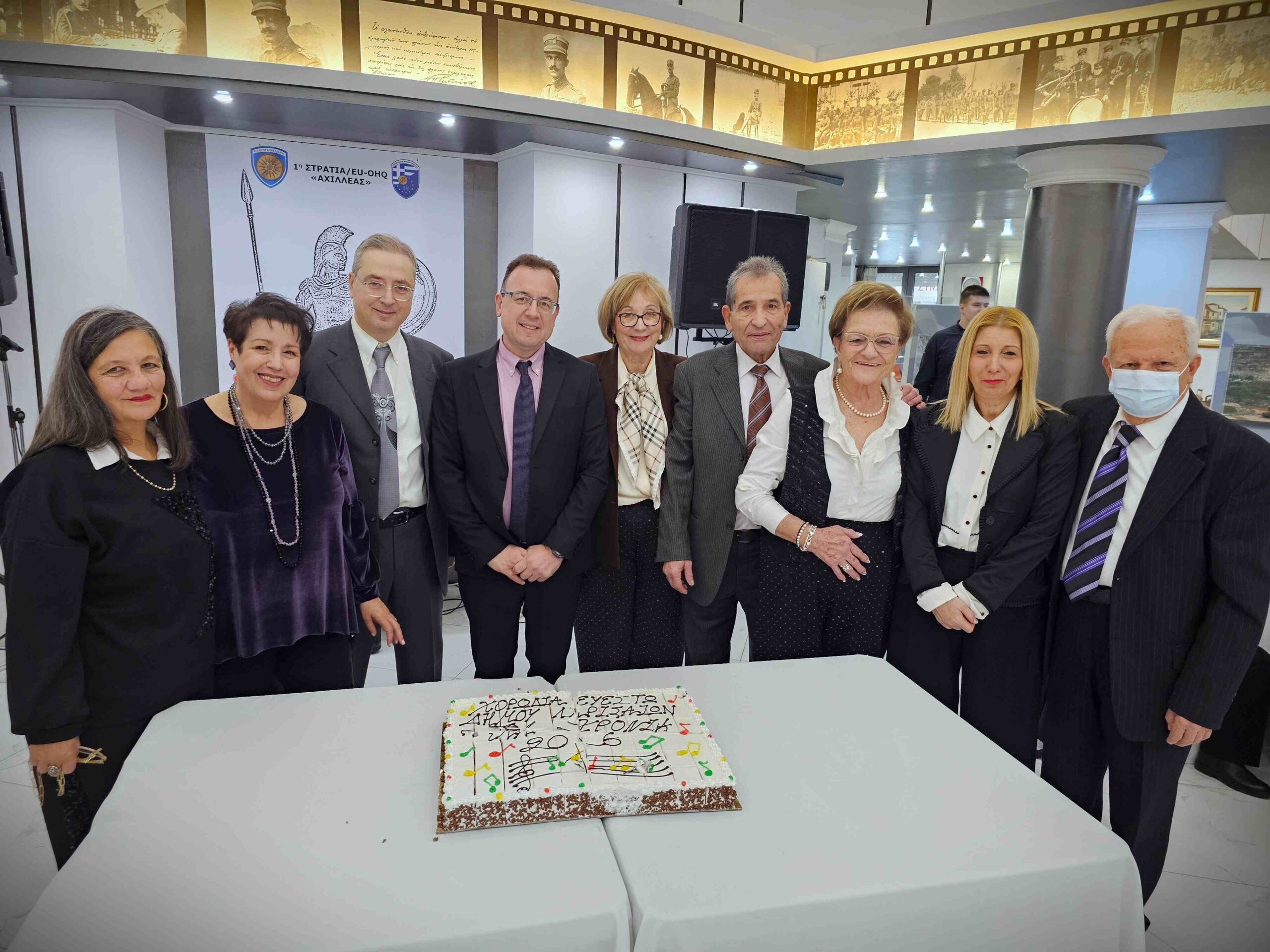 Στη δεξίωση που δόθηκε σε θερμό «οικογενειακό» κλίμα στην φιλόξενη αίθουσα της Λέσχης Αξιωματικών Φρουράς Λάρισας παρευρέθηκαν όλοι οι χορωδοί, ο πρόεδρος της χορωδίας κος Γιώργος Ραϊλης, ο μαέστρος Κωνσταντίνος Μάτης και πολλοί φίλοι της χορωδίας.