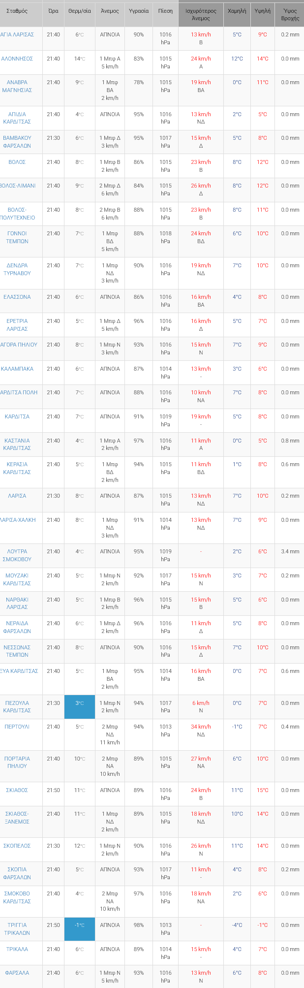 Ο καιρός στη Θεσσαλία