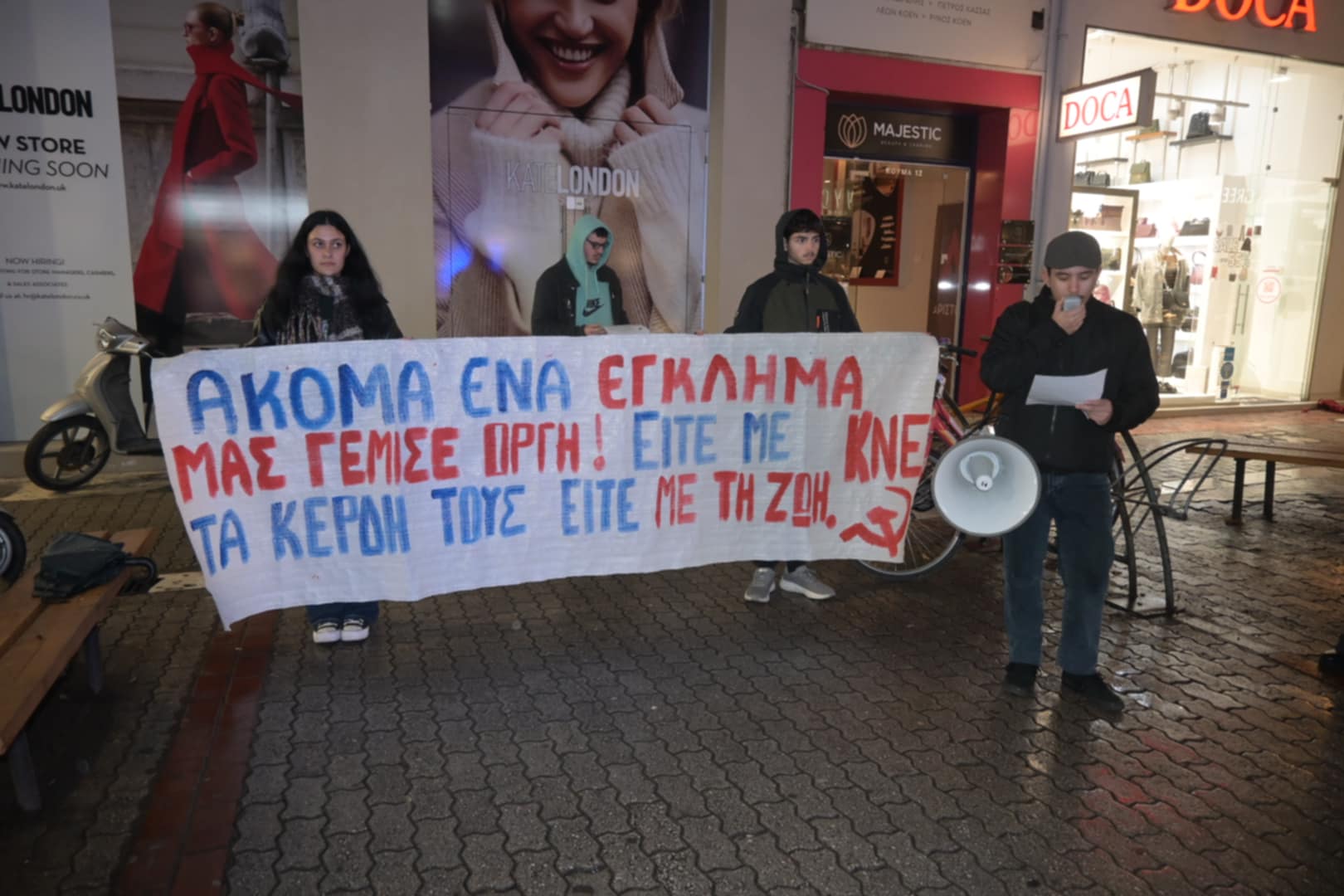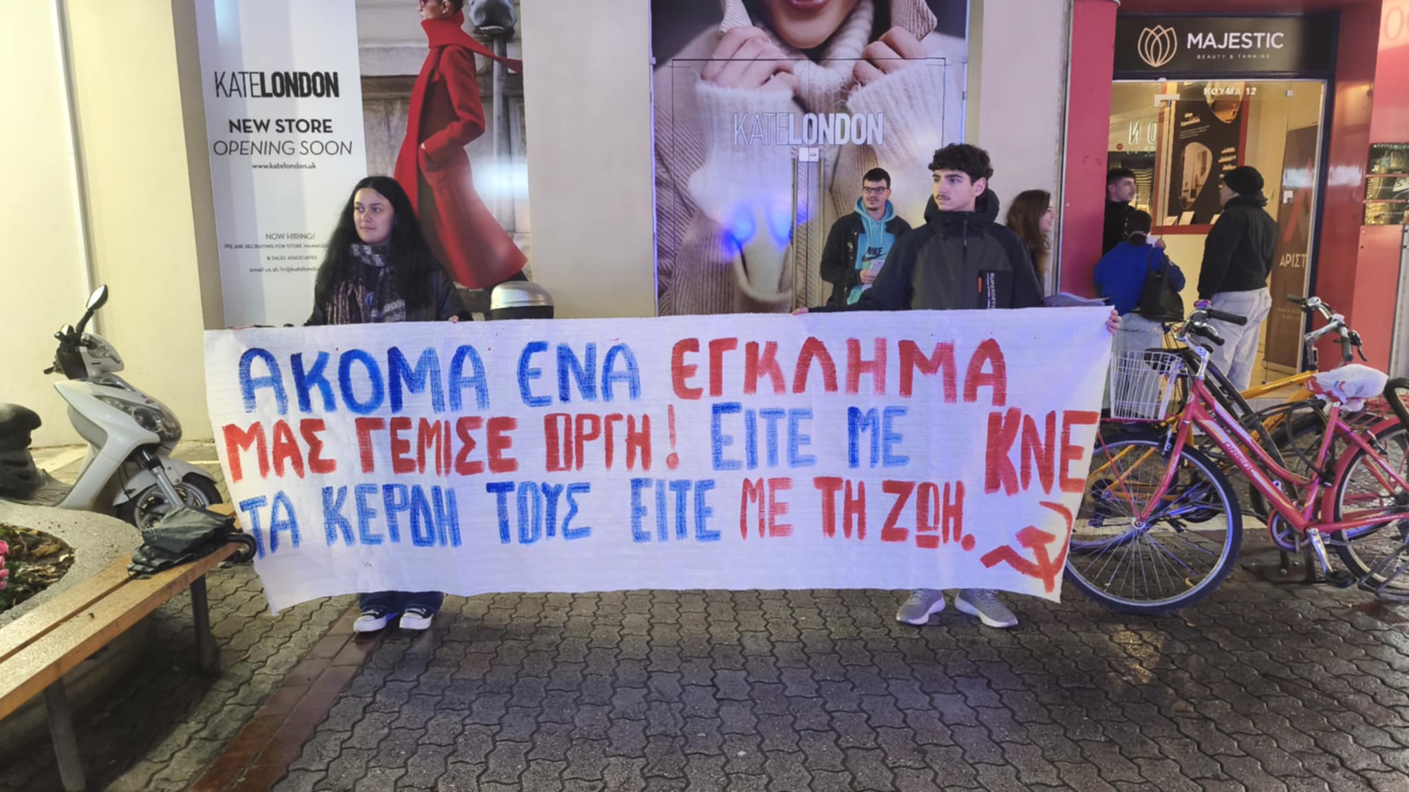 Εξόρμηση έκαναν μέλη της ΚΝΕ και του Εργατικού Κέντρου Λάρισας το απόγευμα της Τρίτης στους κεντρικούς δρόμους της πόλης με αφορμή το πολύνεκρο δυστύχημα στο εργοστάσιο «Βιολάντα» στα Τρίκαλα που στοίχισε την ζωή σε 5 εργάτριες.
