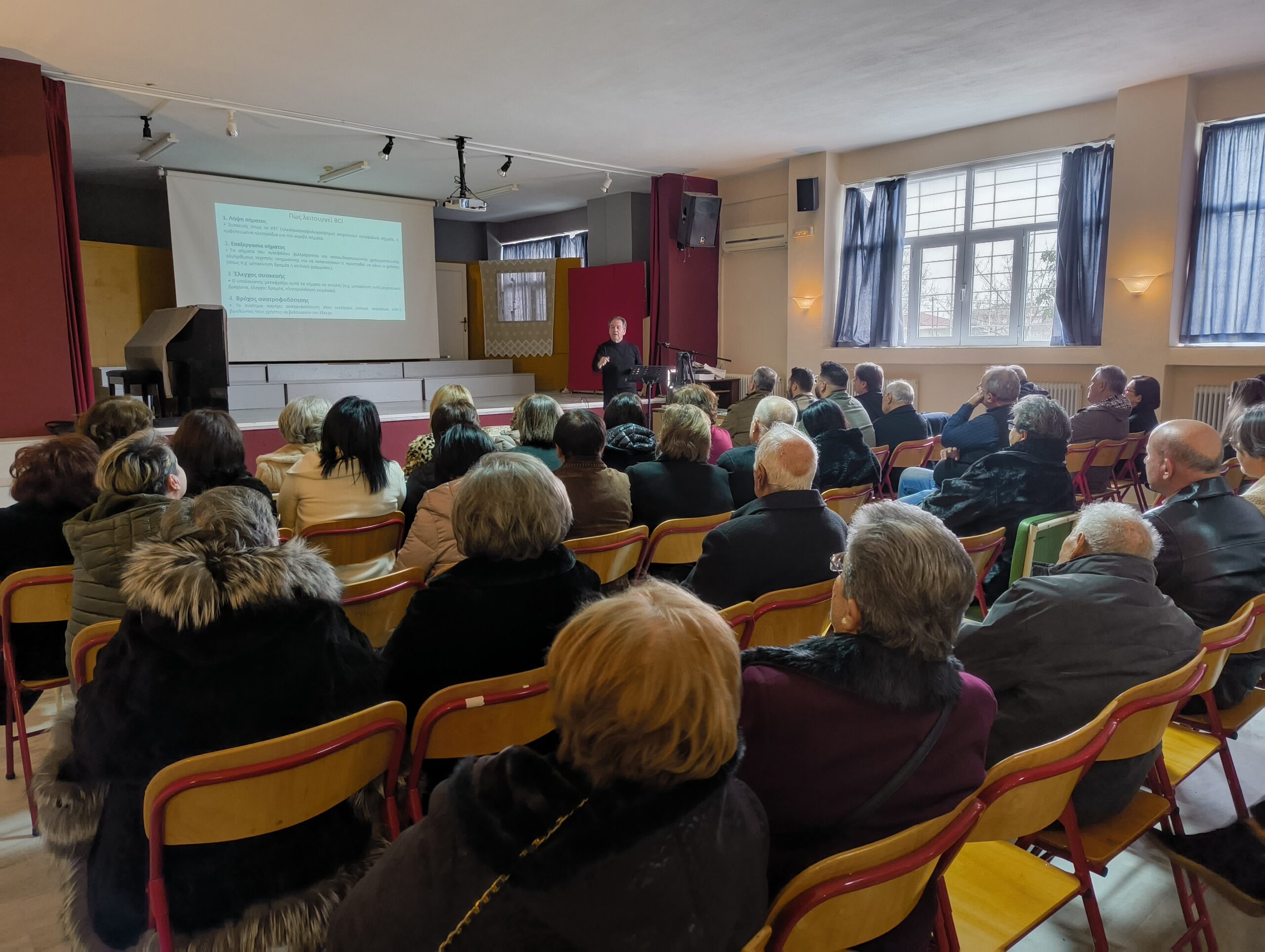Ακολούθησε η ομιλία του κ. Γραβάνη Αχιλλέα, ο οποίος αναφέρθηκε στο BRAIN COMPUTER INTERFACE ( BCI) , στην αλληλεπίδραση Ηλεκτρονικού Υπολογιστή και Ανθρώπινου Εγκεφάλου και στις προσπάθειες που γίνονται να αντιμετωπισθούν σοβαρές παθήσεις του ανθρώπου όπως η παράλυση και παθήσεις του εγκεφάλου. Αναφέρθηκε και στην ηθική πλευρά όλων αυτών των επιτευγμάτων και στους κινδύνους που μπορούν να υπάρξουν ανάλογα με την χρήση. Ήταν μία εξαιρετική ομιλία που προβλημάτισε τους ακροατές. Μετά το τέλος της ομιλίας του, ο κ Γραβάνης απάντησε σε σειρά ερωτήσεων που διατυπώθηκαν από τους παρευρισκόμενους. Ο πρόεδρος του συλλόγου αφού ευχαρίστησε τον κ Γραβάνη για την τιμή που έκανε στον σύλλογο, για την παρουσίαση του και τις απαντήσεις στους παρευρισκόμενους του απένειμε αναμνηστική πλακέτα για την προσφορά του στην Επιστήμη, την Εκπαίδευση και την Έρευνα. .