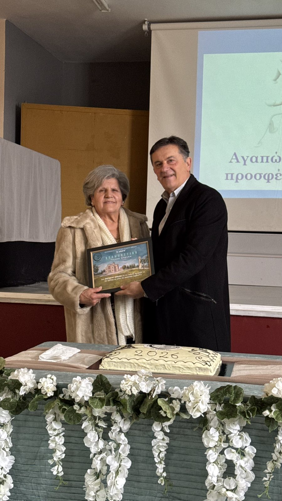 Ακολούθησε απονομή αναμνηστικής πλακέτας στην κα Αναγνώστου Χαρίκλεια για την πολυετή προσφορά της από το 2013 έως σήμερα ως μέλος του Διοικητικού Συμβουλίου. Ήταν πάντα παρούσα με αγάπη και διάθεση προσφοράς και αλληλεγγύης , βοηθώντας στην πραγματοποίηση των σκοπών του συλλόγου.