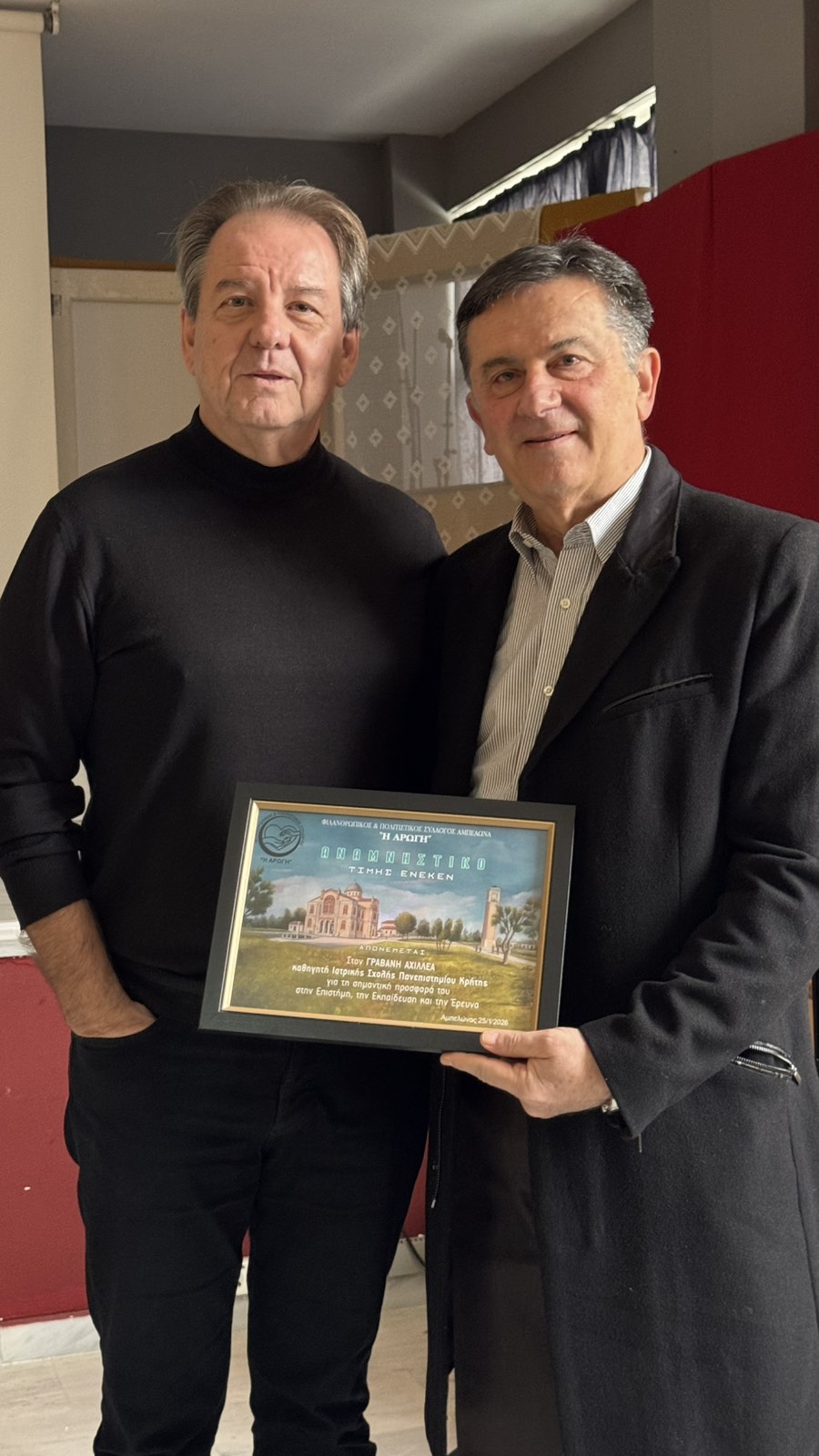 Με επιτυχία πραγματοποιήθηκε την Κυριακή 25 Ιανουαρίου 2026 και ώρα 11:00 π.μ. στην αίθουσα εκδηλώσεων του Γυμνασίου Αμπελώνα, εκδήλωση Κοπής Πρωτοχρονιάτικης πίτας – Ομιλία για την Αλληλεπίδραση Ανθρώπινου Εγκεφάλου και Ηλεκτρονικού Υπολογιστή. Η Βιοηθική Διάσταση από τον καθηγητή Φαρμακολογίας της Ιατρικής Σχολής του Πανεπιστημίου Κρήτης και Ερευνητή του Ινστιτούτου Μοριακής Βιολογίας & Βιοτεχνολογίας του Ιδρύματος Τεχνολογίας και Έρευνας κ. Γραβάνη Αχιλλέα και Γενική Συνέλευση – Εκλογές του Φιλανθρωπικού & Πολιτιστικού Συλλόγου Αμπελώνα ” Η ΑΡΩΓΗ”.