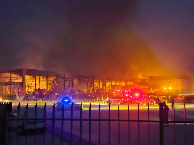 Οι εικόνες από το σημείο ανατριχιαστικές. Ισχυρές πυροσβεστικές δυνάμεις δίνουν μάχη με τις φλόγες ενώ το επιβλητικό κτίριο των πολλων τετραγωνικών, έχει κοπεί στα δύο από την έκρηξη με την καταστροφή του από τις φλόγες να είναι ολοκληρωτική.