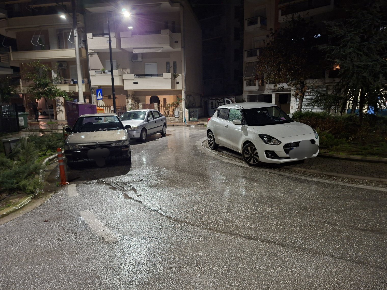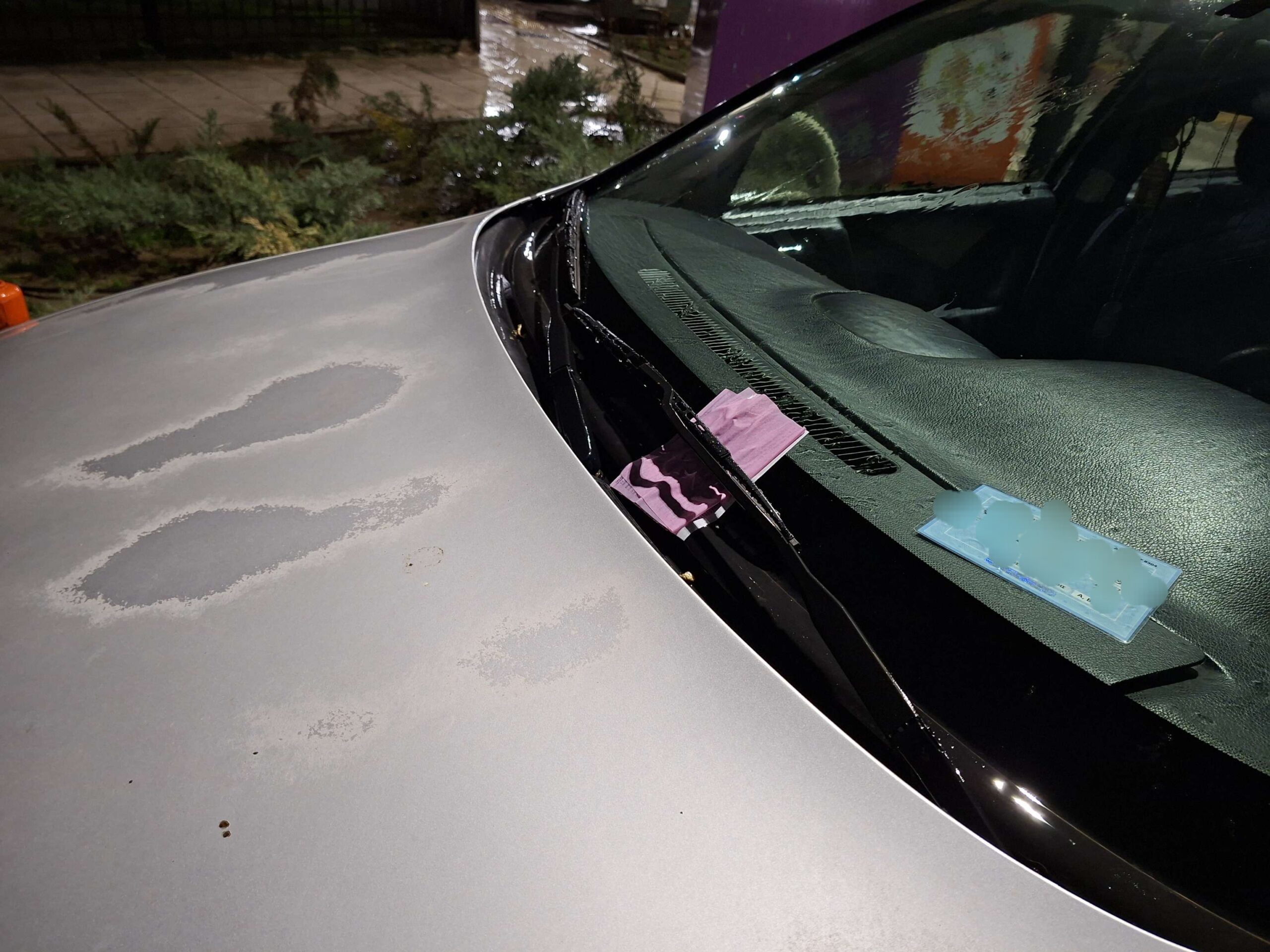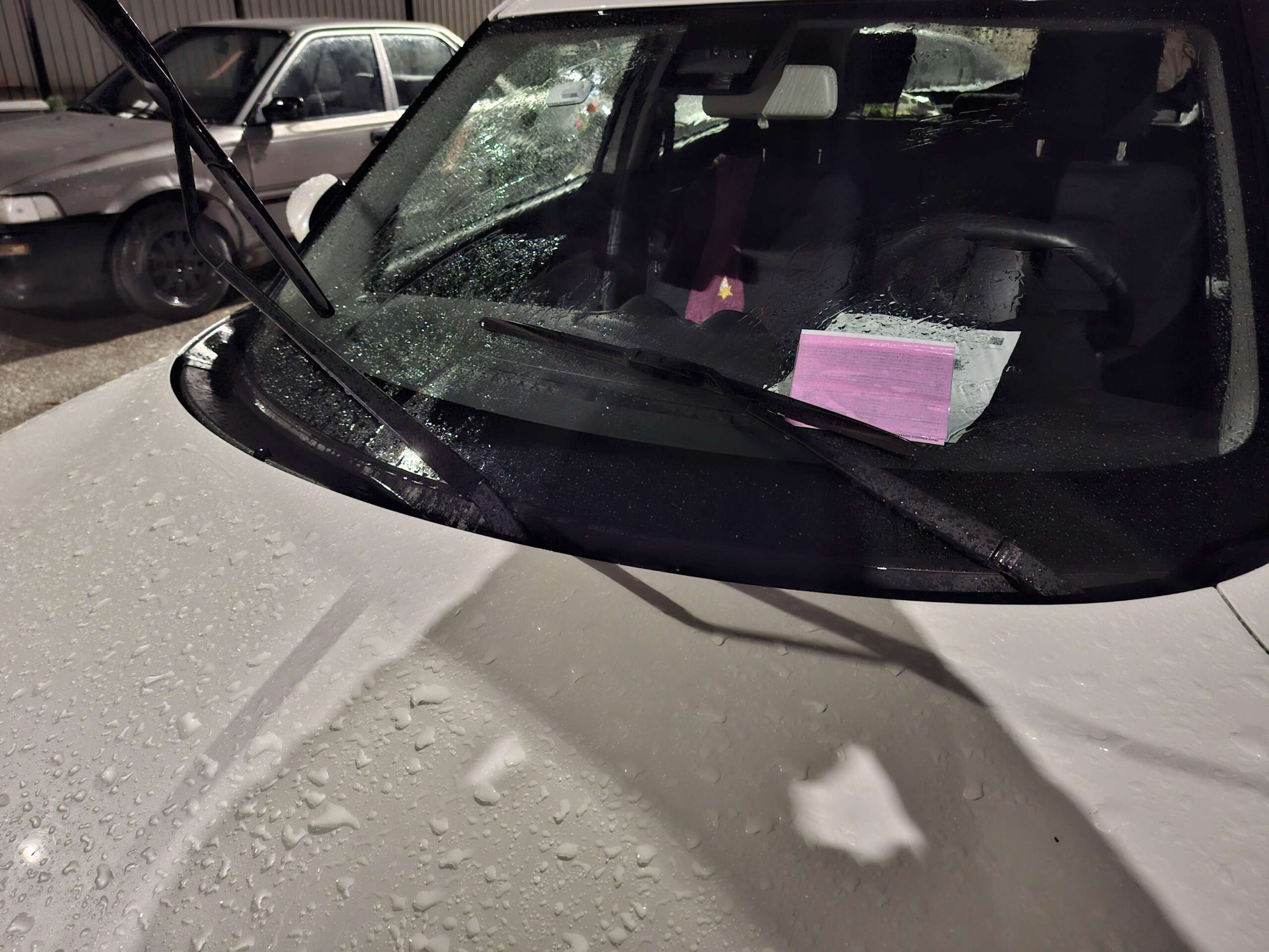 Όπως ήταν αναμενόμενο η αστυνομία μοίρασε και στα τρία οχήματα τα γνωστά σε όλους ροζ χαρτάκια, τα οποία με την βροχή κόλλησαν στο παρμπριζ.