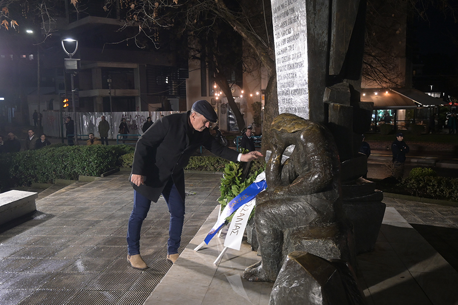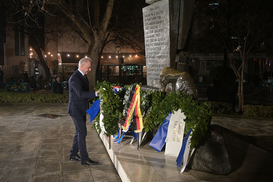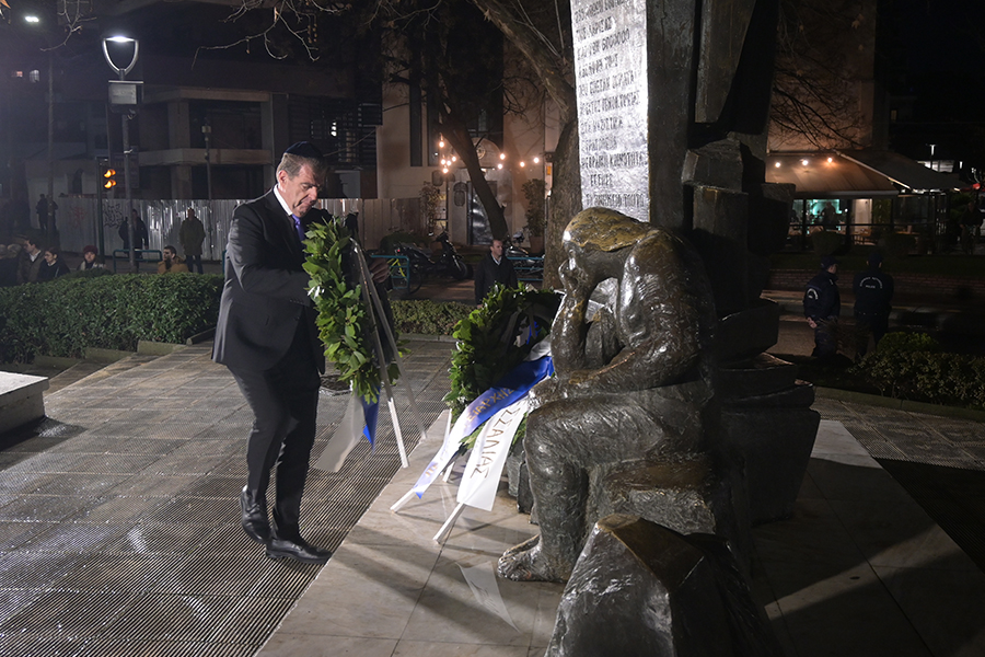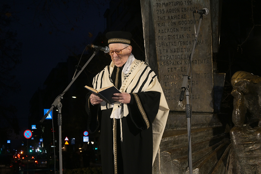 Νωρίτερα τελέστηκε επιμνημόσυνη δέηση και κατάθεση στεφάνων από εκπροσώπους πολιτικών και στρατιωτικών αρχών, Πρεσβειών και Προξενείων, εβραϊκών οργανώσεων, φορέων και συλλόγων της πόλης στο Μνημείο Ολοκαυτώματος Ελλήνων Εβραίων Λάρισας, στην πλατεία Εβραίων Μαρτύρων Κατοχής, ενώ τηρήθηκε ενός λεπτού σιγή.