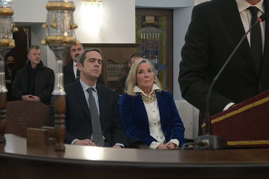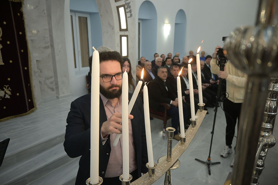 Οι εκδηλώσεις μνήμης συνεχίστηκαν στην Ιερά Συναγωγή Λάρισας «Ετς Χαγίμ», όπου πραγματοποιήθηκε το άναμμα των κεριών στη μνήμη των 6.000.000 Εβραίων θυμάτων του Ολοκαυτώματος.