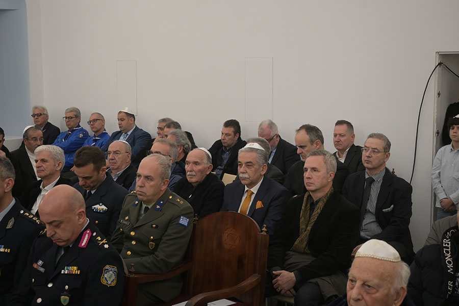 Χαιρετισμούς απεύθυναν ο περιφερειάρχης Θεσσαλίας Δημήτρης Κουρέτας, ο δήμαρχος Λαρισαίων Θανάσης Μαμάκος και ο πρόεδρος της Ισραηλιτικής Κοινότητας Λάρισας Μωυσής Μανουάχ.