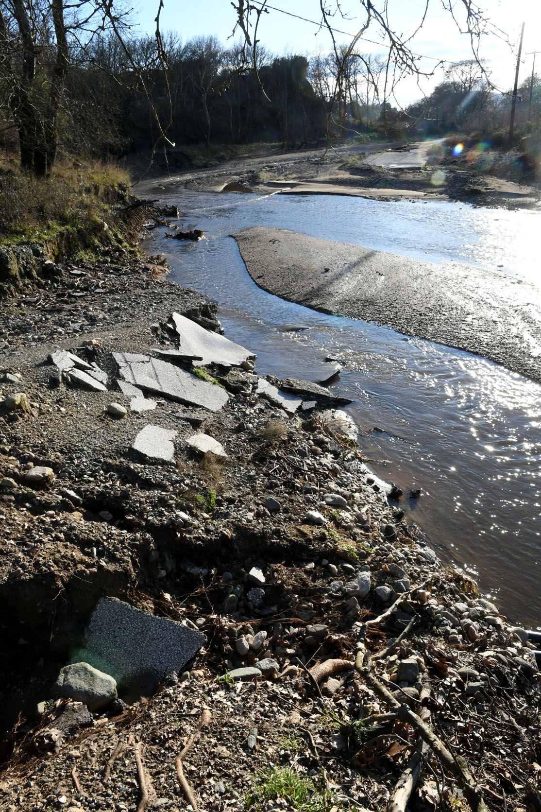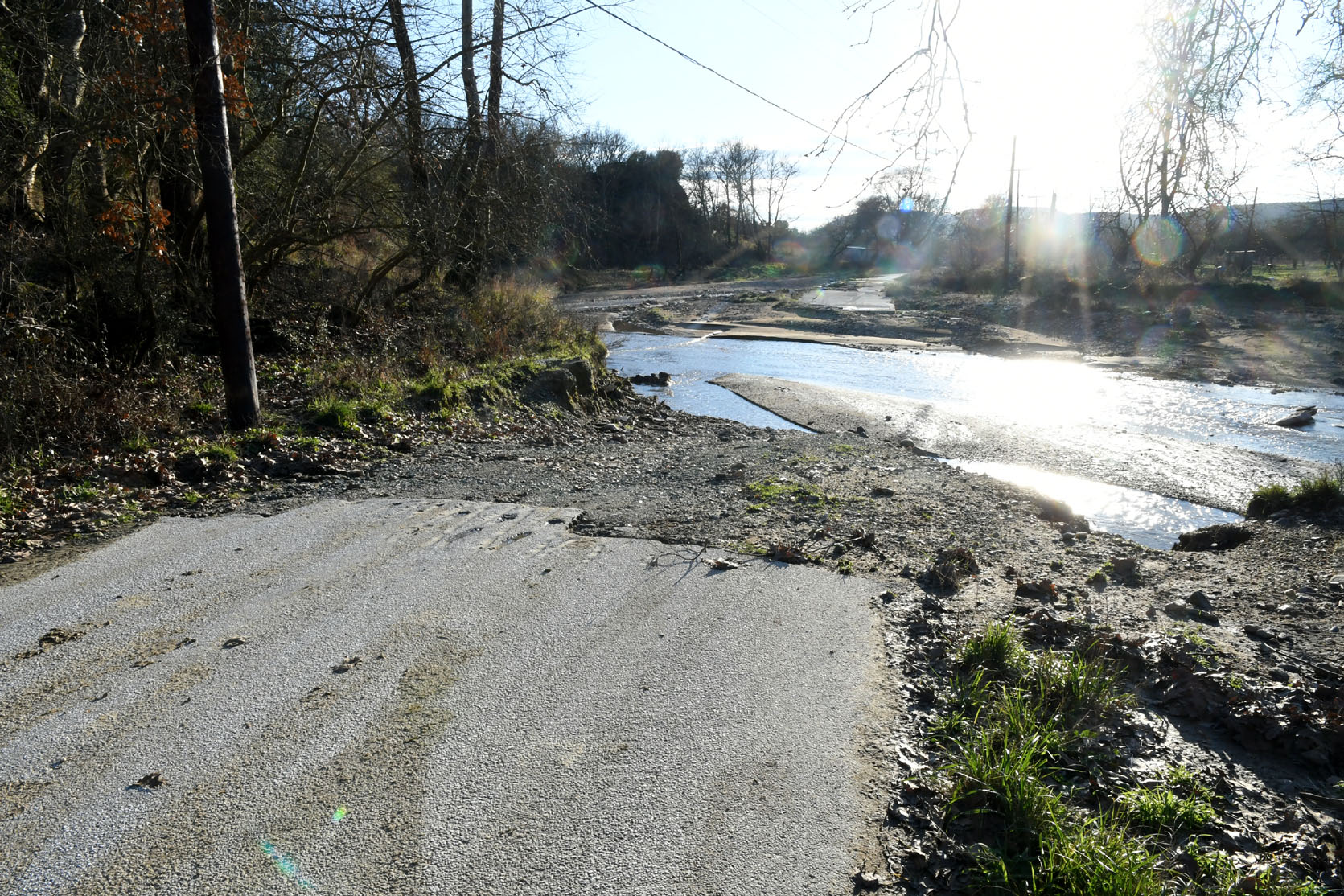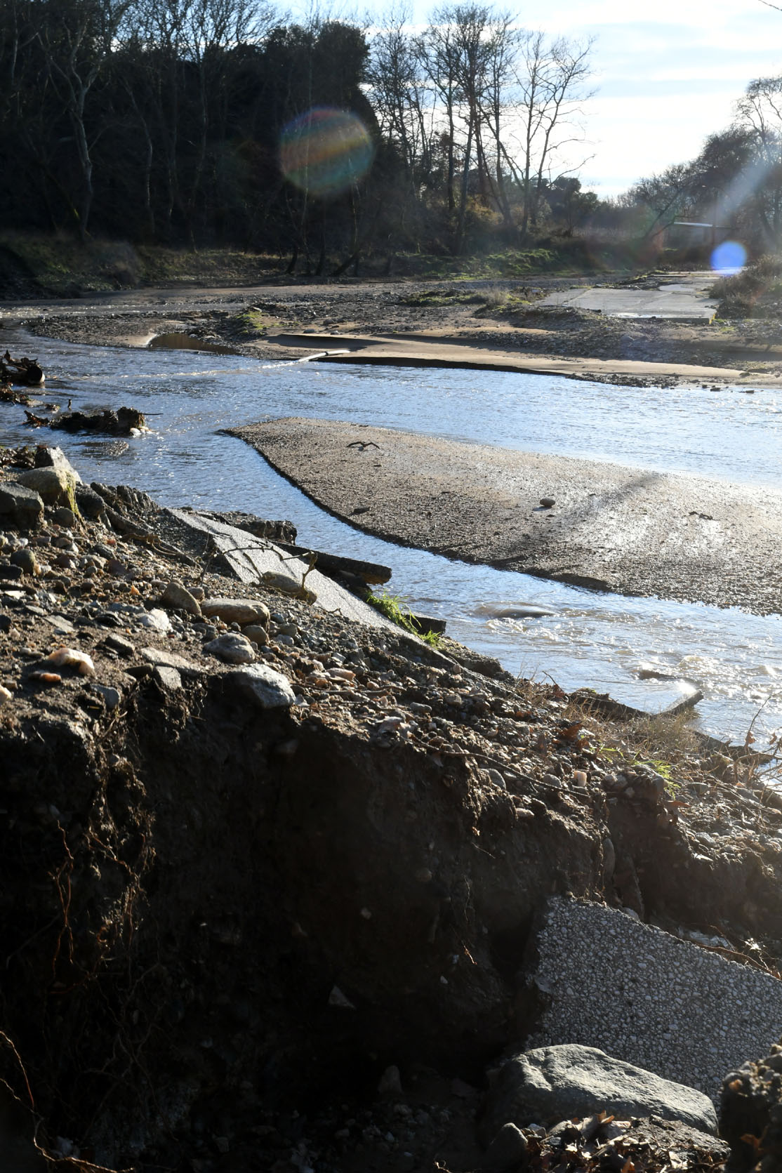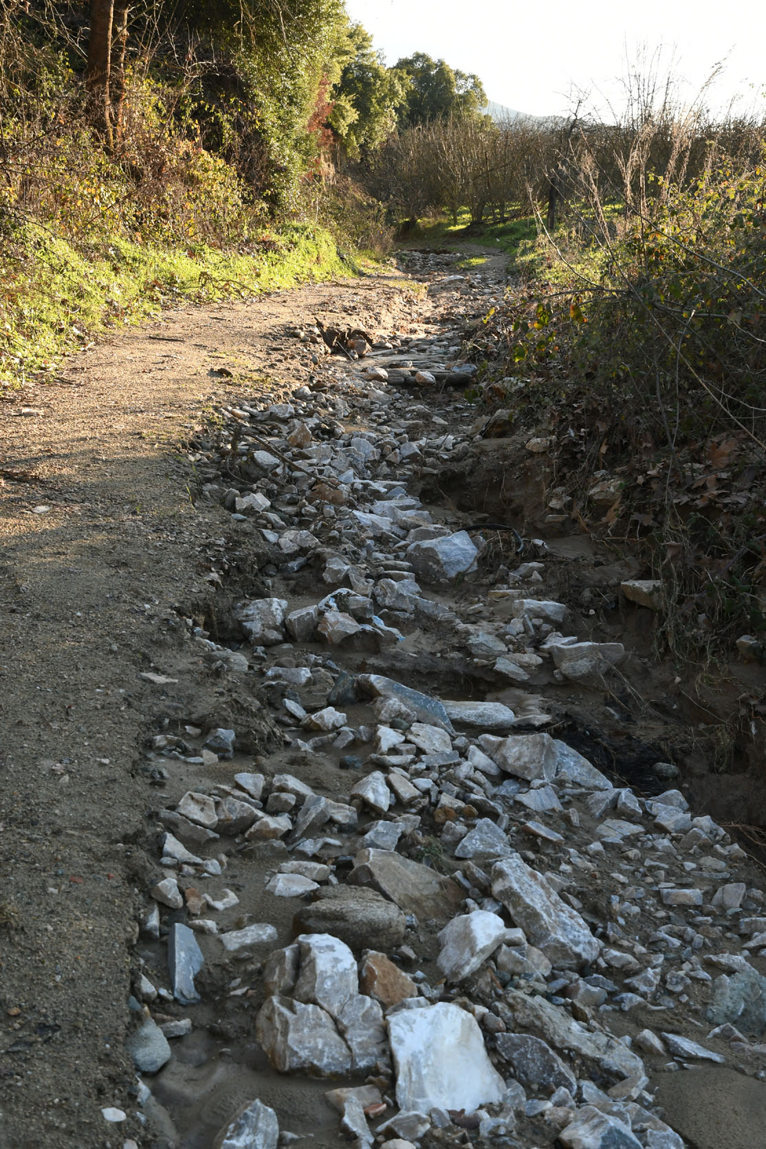 Φωτογραφίες από την περιοχή της Ποταμιάς (κομμένος στα δύο ο δρόμος Ποταμιά – Αετόλοφος, κατεστραμμένο το αγροτικό δίκτυο, βυθισμένες στη λάσπη οι καλλιέργειες):