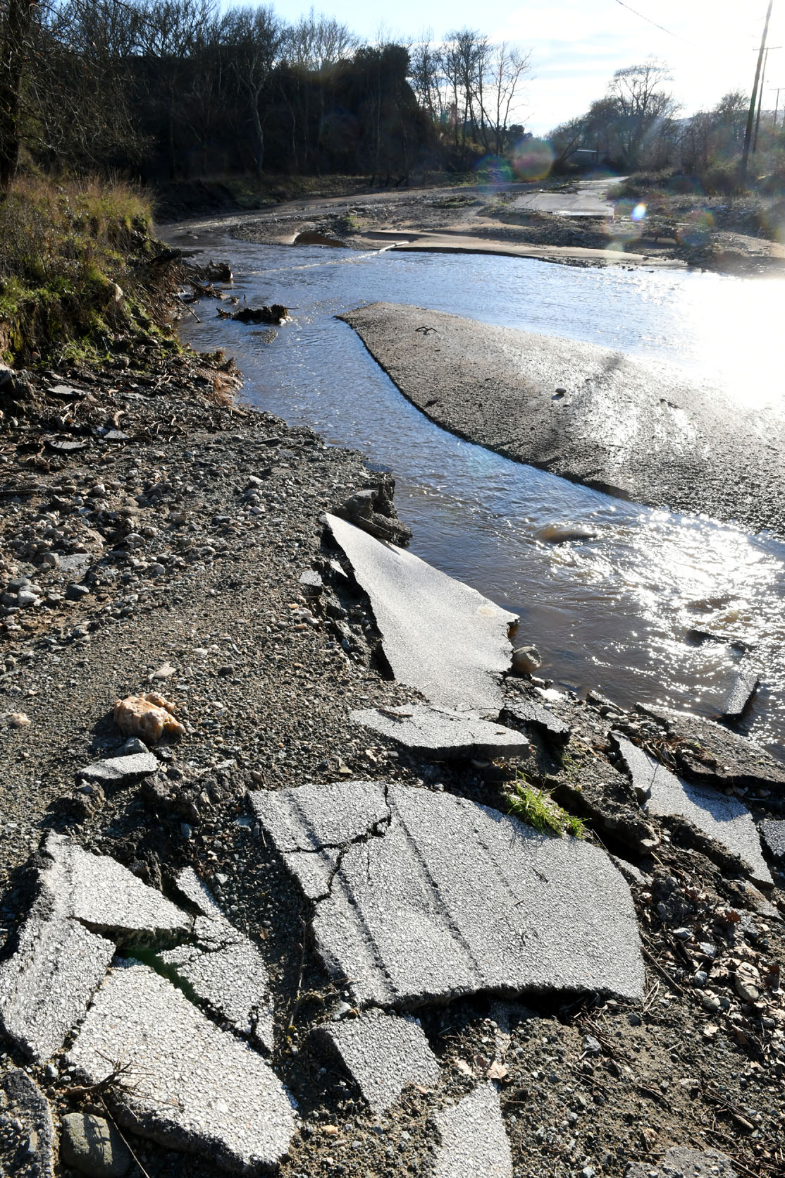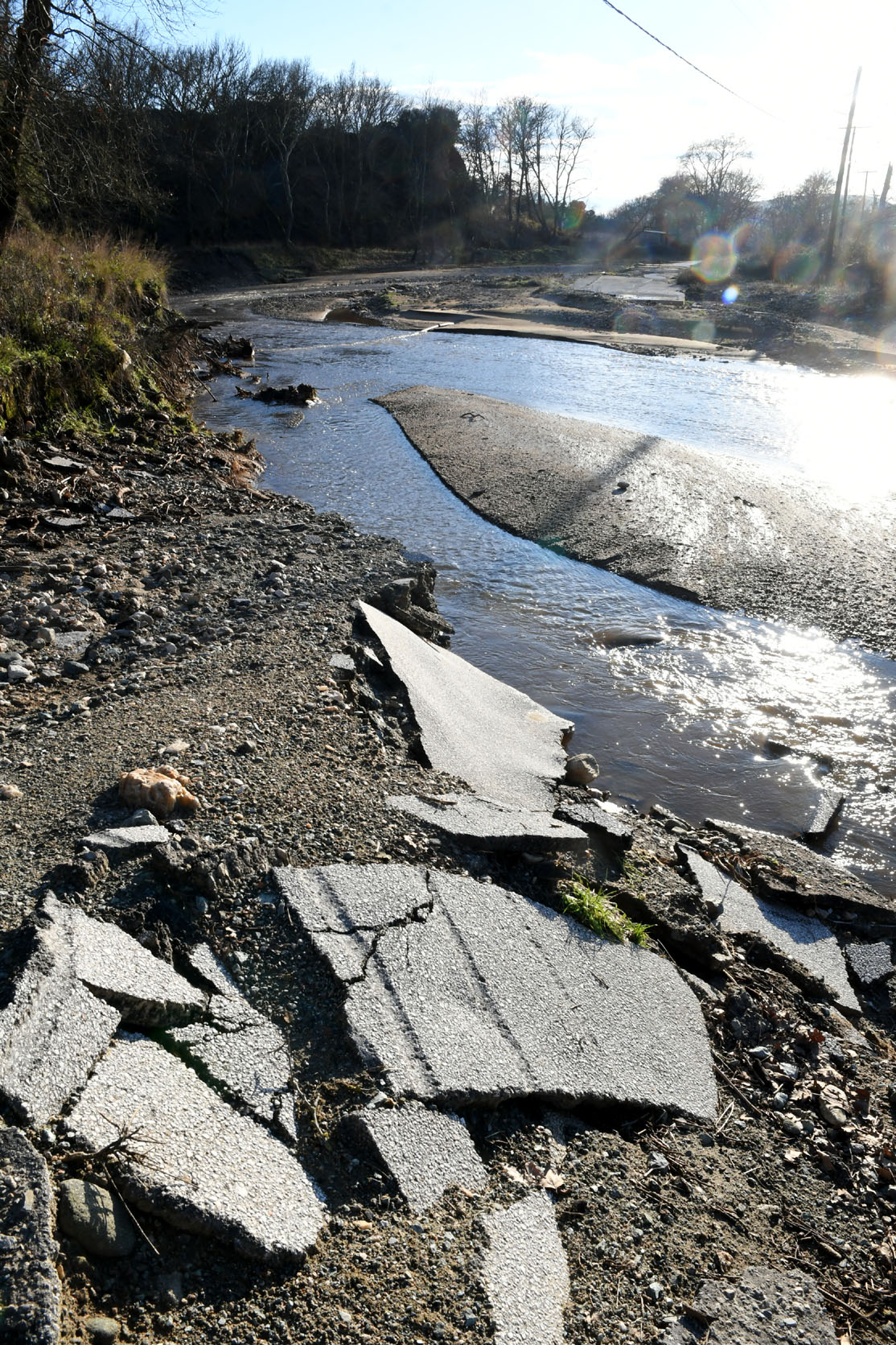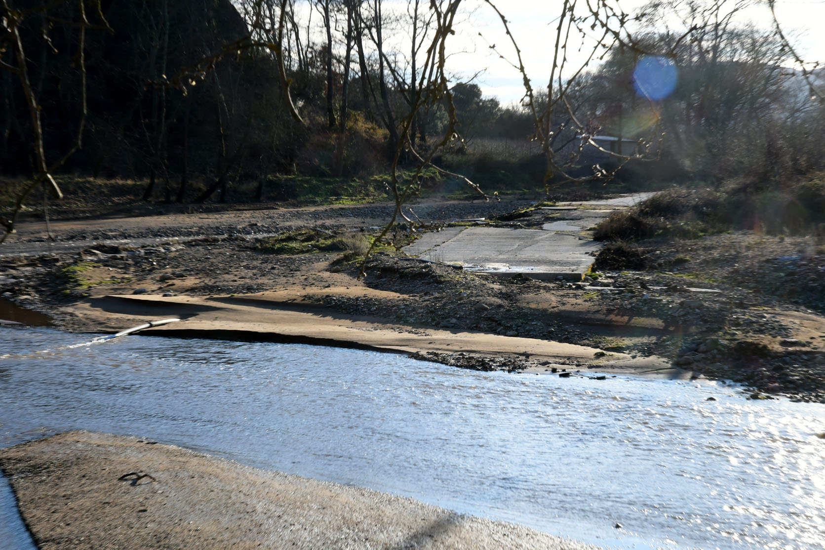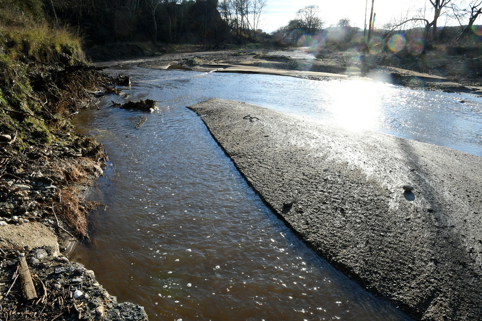 Φωτογραφίες από την περιοχή της Ποταμιάς (κομμένος στα δύο ο δρόμος Ποταμιά – Αετόλοφος, κατεστραμμένο το αγροτικό δίκτυο, βυθισμένες στη λάσπη οι καλλιέργειες):