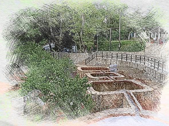 Το όνομα του δεν είναι τυχαίο ούτε ποιητική υπερβολή αλλά γεννιέται από τα ίδια του τα σπλάχνα, από τη μεταλλική πηγή που αναβλύζει εδώ και αιώνες, νερό ανθρακούχο, σταθερό στους δεκαεπτά βαθμούς, βαρύ σε σίδηρο, που βάφει τις πέτρες κοκκινωπές, σαν να κύλησε πάνω τους αίμα της γης. Το νερό αυτό δεν φυλακίζεται σε μπουκάλια μα πίνεται εκεί όπου γεννιέται, σαν ιερό δώρο του βουνού στον περαστικό, μια πράξη σιωπηλής συμφιλίωσης ανθρώπου και φύσης.