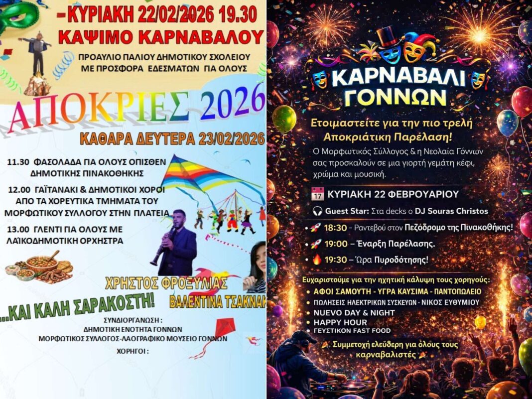 Την Κυριακή 22 Φεβρουαρίου στις 18:30 ραντεβού στον πεζόδρομο της πινακοθήκης στην κεντρική πλατεία του χωριού με έναρξη της αποκριάτικης παρέλασης στις 19:00.