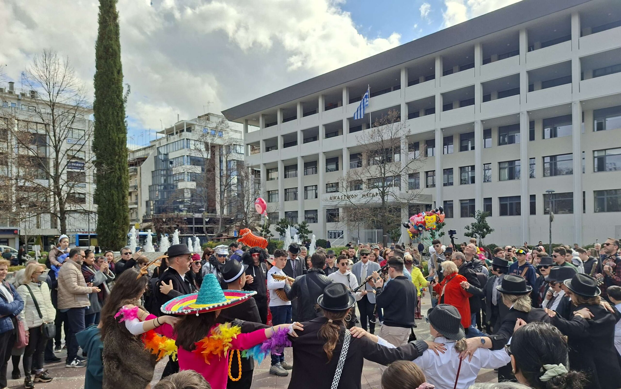 Στην κεντρική πλατεία στήθηκε ένα δεύτερο γλέντι με γαιτανάκι και παραδοσιακή μουσική, δίνοντας την ευκαιρία σε πολλούς Λαρισαίους να το ρίξουν έξω. Όπως χαρακτηριστικά δήλωσε ο Δήμαρχος Λαρισαίων Θανάσης Μαμάκος, “Αφήνουμε πίσω τις σκοτούρες της καθημερινότητας και γιορτάζουμε την ημέρα της Αποκριάς “.