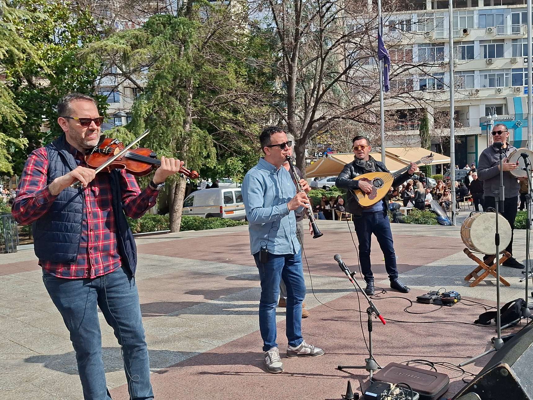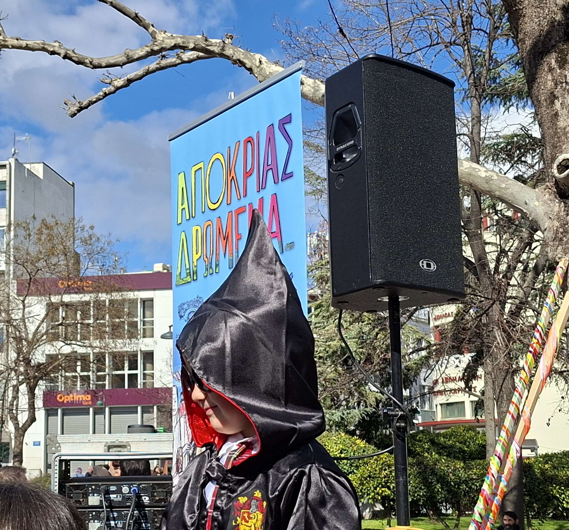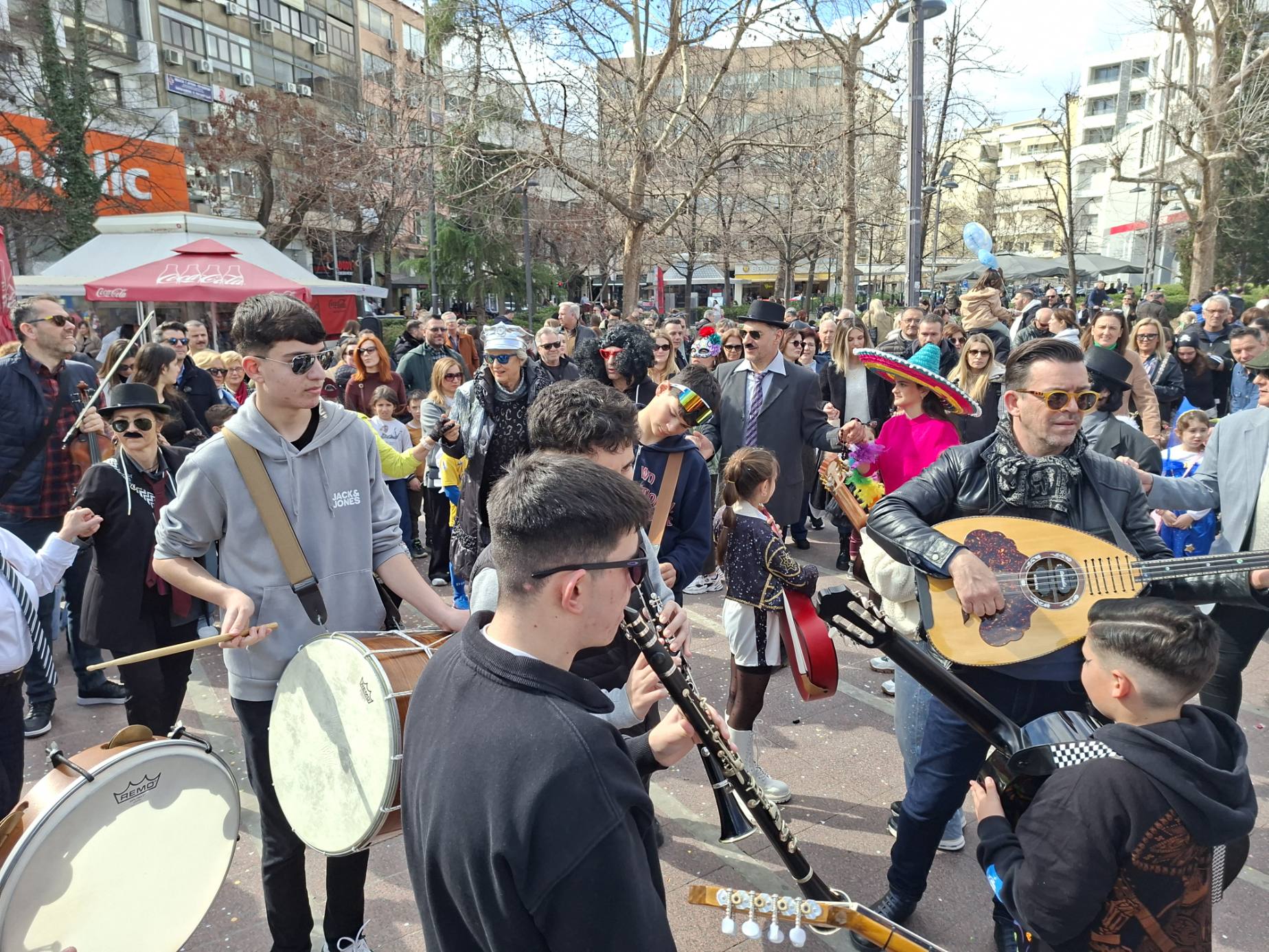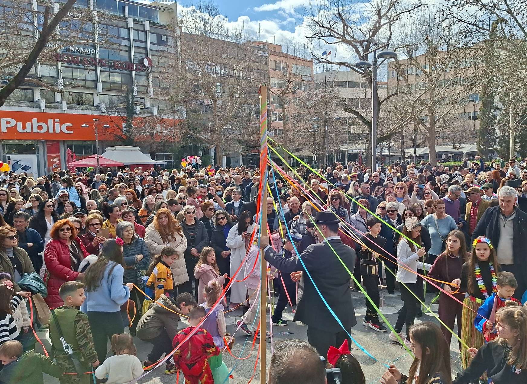 Στην κεντρική πλατεία στήθηκε ένα δεύτερο γλέντι με γαιτανάκι και παραδοσιακή μουσική, δίνοντας την ευκαιρία σε πολλούς Λαρισαίους να το ρίξουν έξω. Όπως χαρακτηριστικά δήλωσε ο Δήμαρχος Λαρισαίων Θανάσης Μαμάκος, “Αφήνουμε πίσω τις σκοτούρες της καθημερινότητας και γιορτάζουμε την ημέρα της Αποκριάς “.