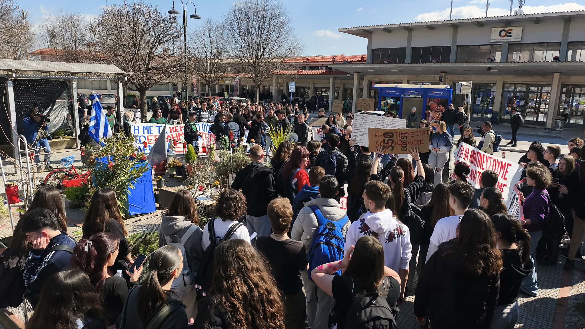 Οι μαθητές και φοιτητές συγκεντρώθηκαν νωρίς το μεσημέρι της Πέμπτης, στην Κεντρική πλατεία της Λάρισας για τα τρία χρόνια από την τραγωδία του σιδηροδρομικού δυστυχήματος των Τεμπών. Έπειτα ακολούθησε πορεία στους κεντρικούς δρόμους της πόλης με επόμενο σταθμό την πλατεία του ΟΣΕ.