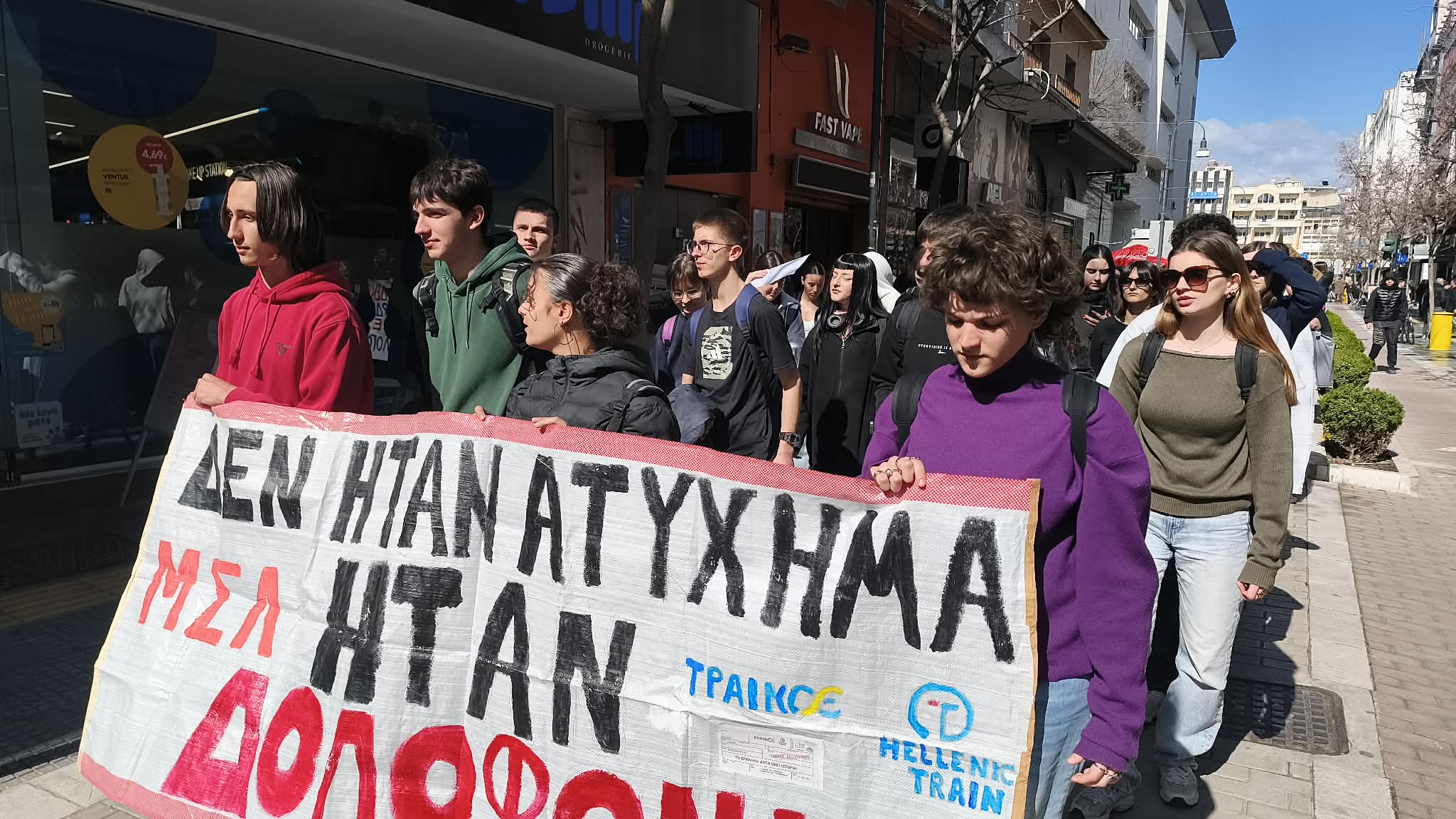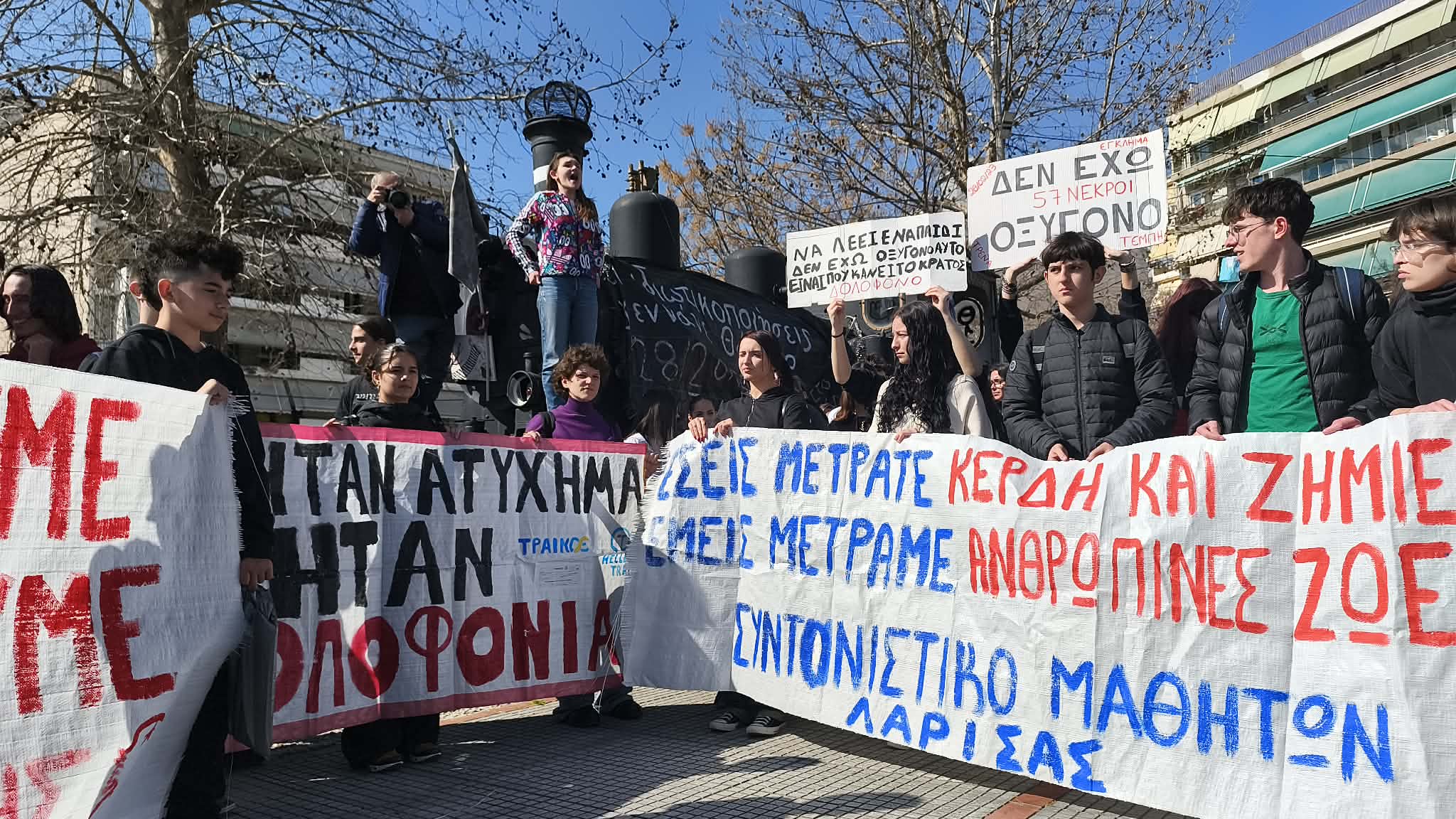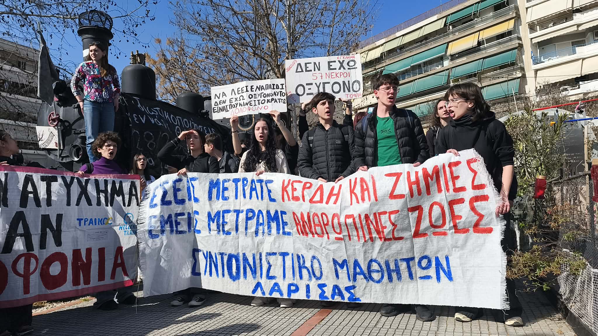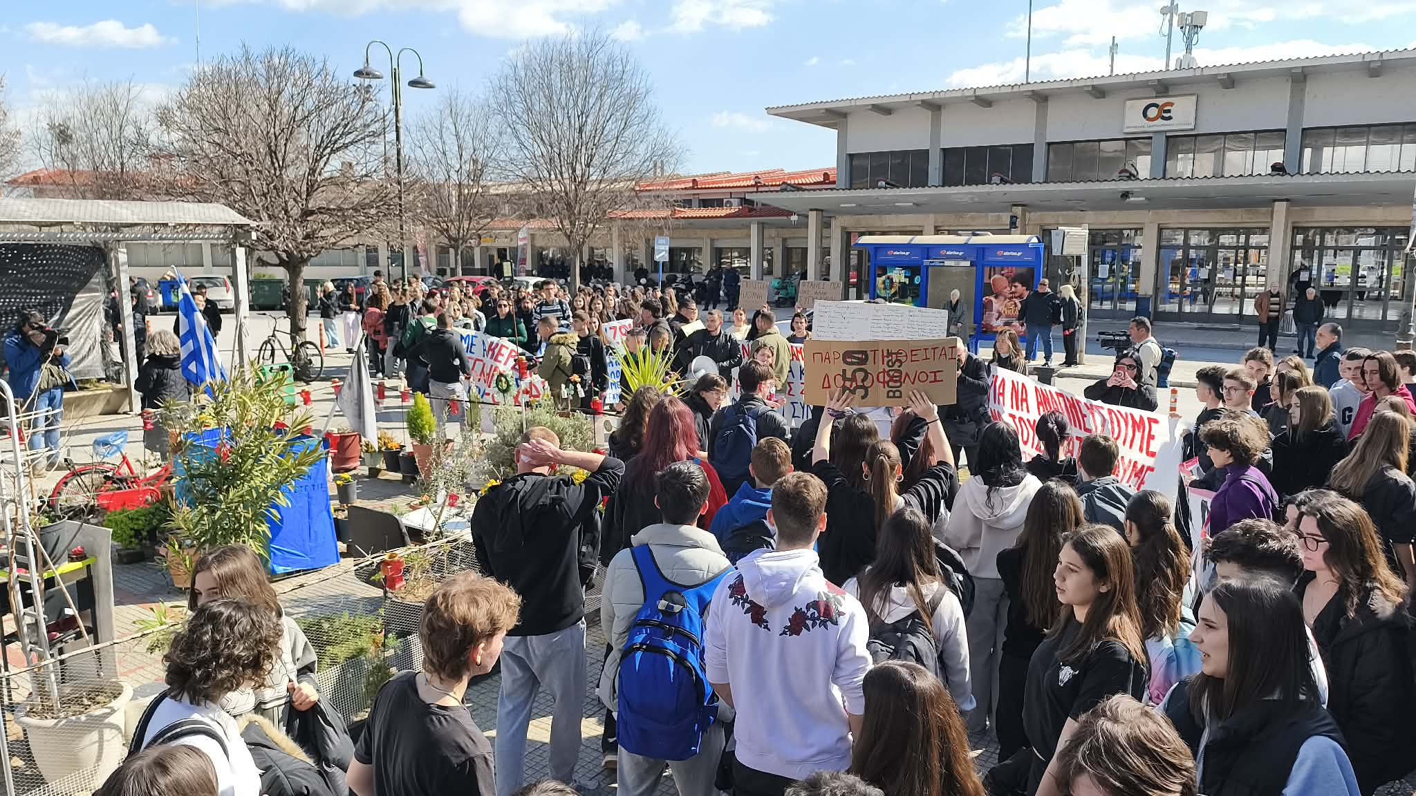 Οι μαθητές και φοιτητές συγκεντρώθηκαν νωρίς το μεσημέρι της Πέμπτης, στην Κεντρική πλατεία της Λάρισας για τα τρία χρόνια από την τραγωδία του σιδηροδρομικού δυστυχήματος των Τεμπών. Έπειτα ακολούθησε πορεία στους κεντρικούς δρόμους της πόλης με επόμενο σταθμό την πλατεία του ΟΣΕ.