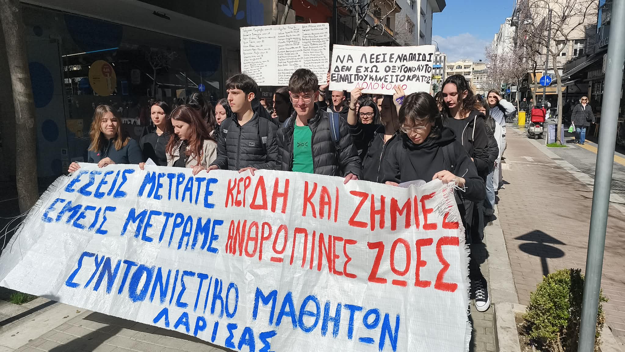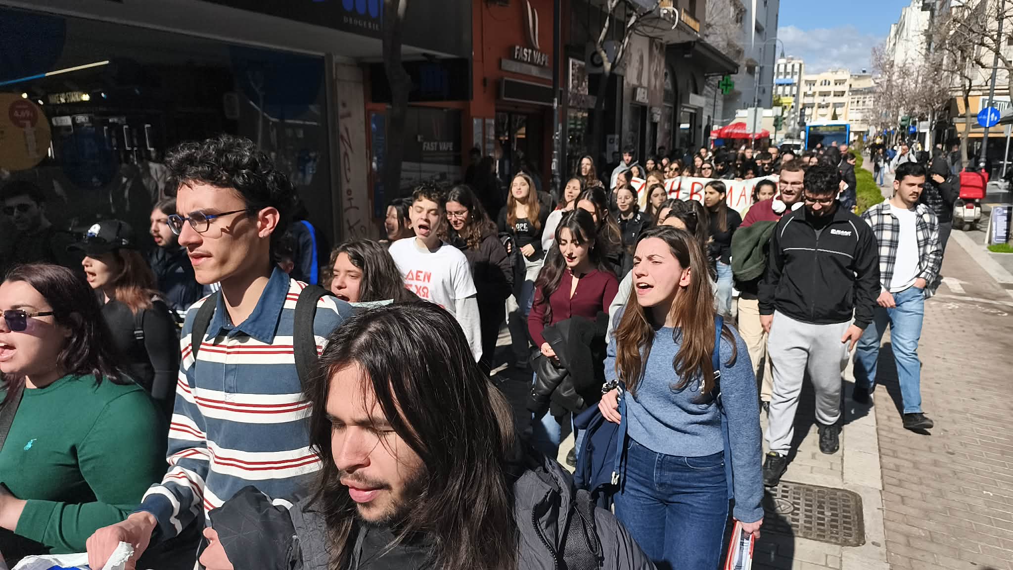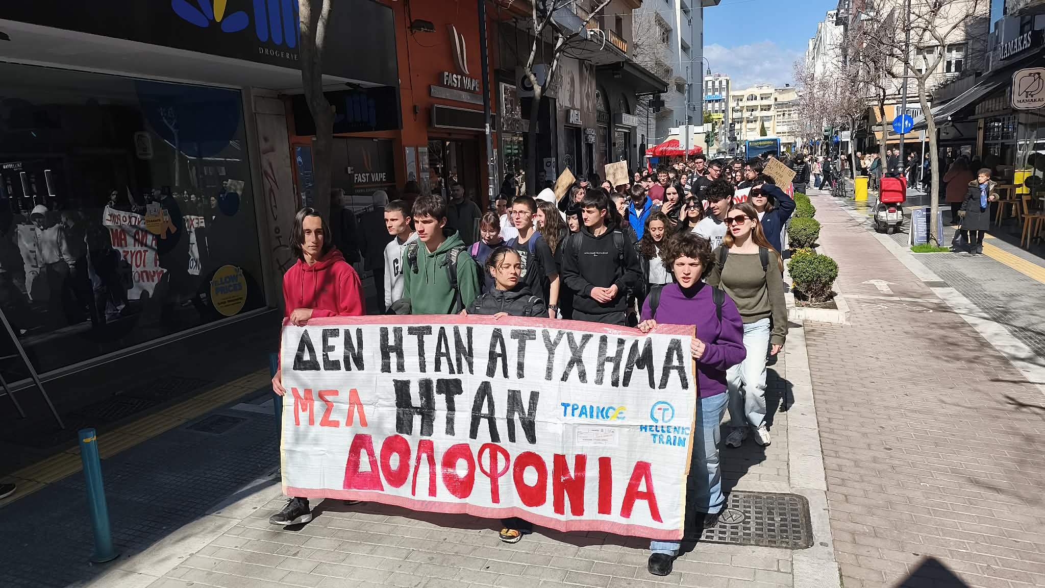 Οι μαθητές και φοιτητές συγκεντρώθηκαν νωρίς το μεσημέρι της Πέμπτης, στην Κεντρική πλατεία της Λάρισας για τα τρία χρόνια από την τραγωδία του σιδηροδρομικού δυστυχήματος των Τεμπών. Έπειτα ακολούθησε πορεία στους κεντρικούς δρόμους της πόλης με επόμενο σταθμό την πλατεία του ΟΣΕ.