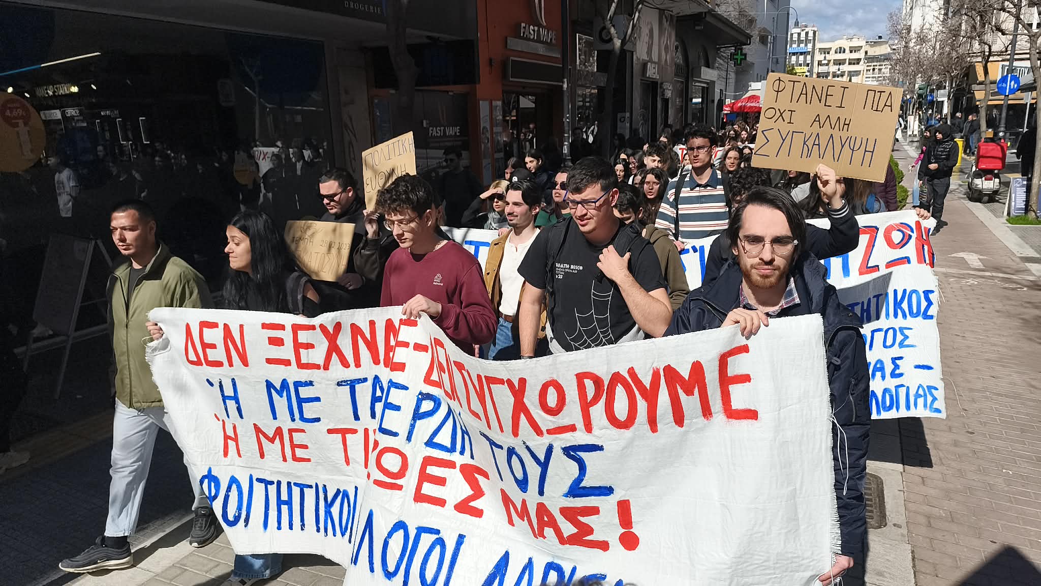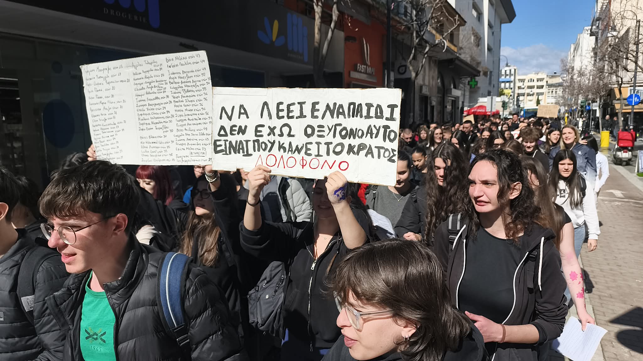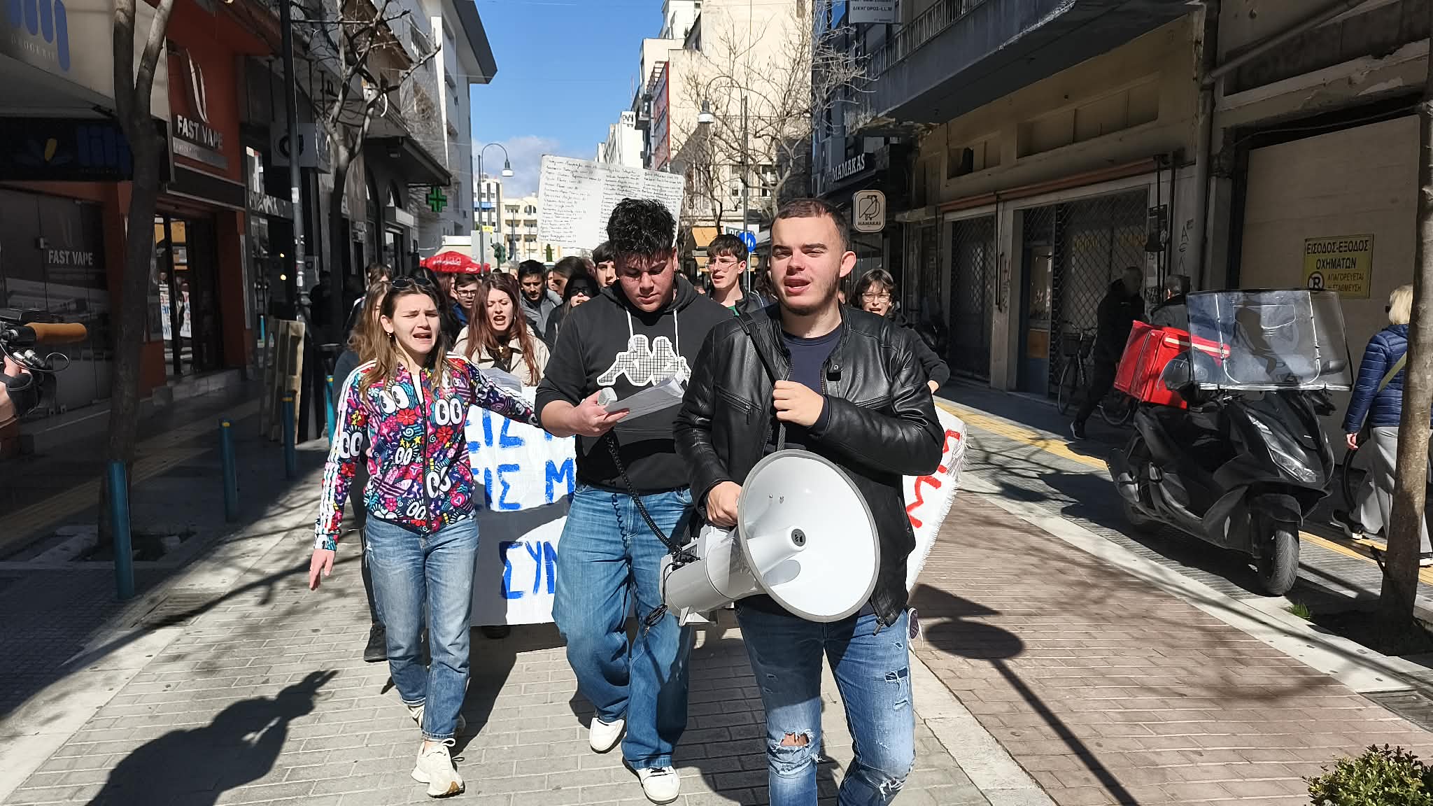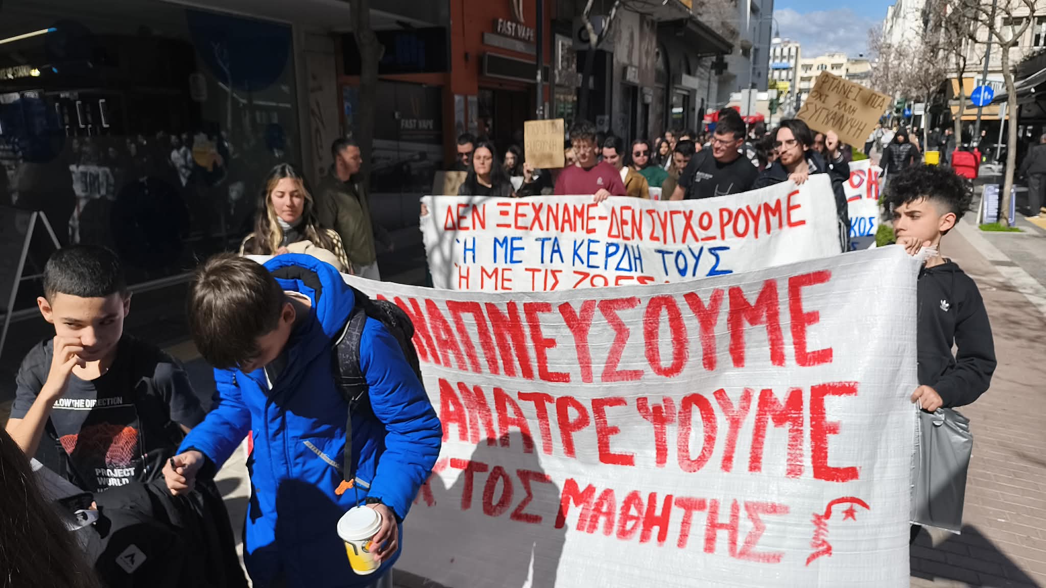 Οι μαθητές και φοιτητές συγκεντρώθηκαν νωρίς το μεσημέρι της Πέμπτης, στην Κεντρική πλατεία της Λάρισας για τα τρία χρόνια από την τραγωδία του σιδηροδρομικού δυστυχήματος των Τεμπών. Έπειτα ακολούθησε πορεία στους κεντρικούς δρόμους της πόλης με επόμενο σταθμό την πλατεία του ΟΣΕ.