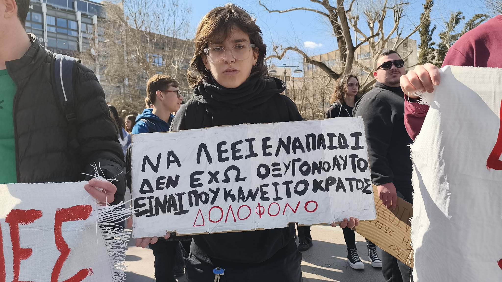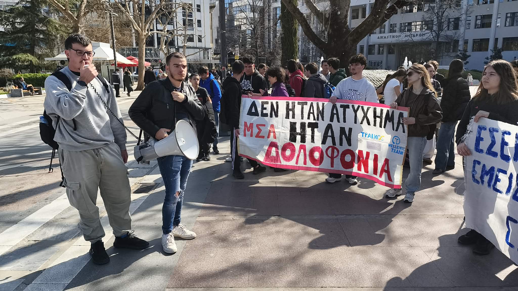 Φοιτητής δήλωσε: “Στηρίζουμε τον δίκαιο αγώνα του Συλλόγου των οικογενειών των Τεμπών”.