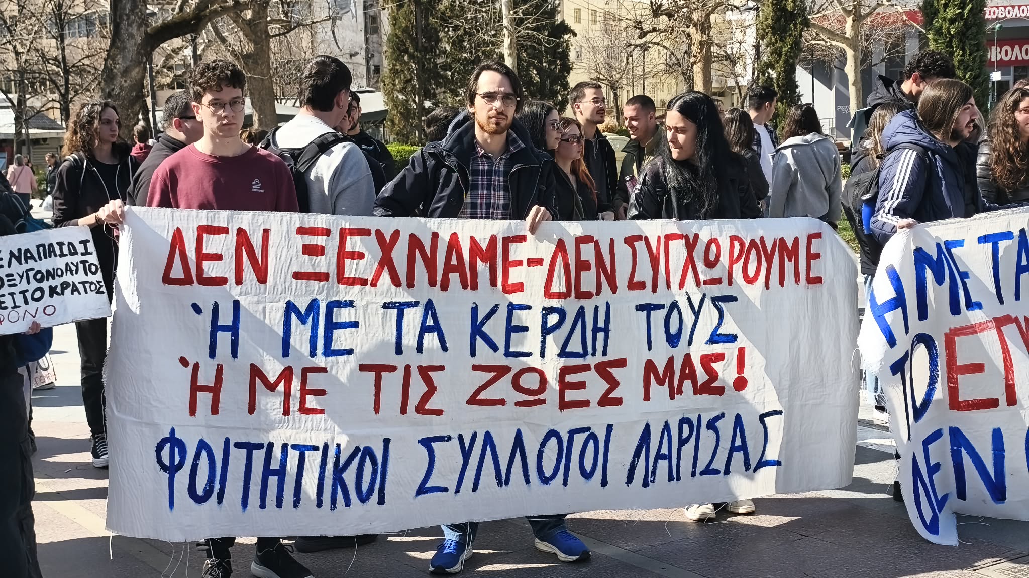 Στους δρόμους μαθητές και φοιτητές της Λάρισας για την τραγωδία στα Τέμπη (ΒΙΝΤΕΟ & ΦΩΤΟ)