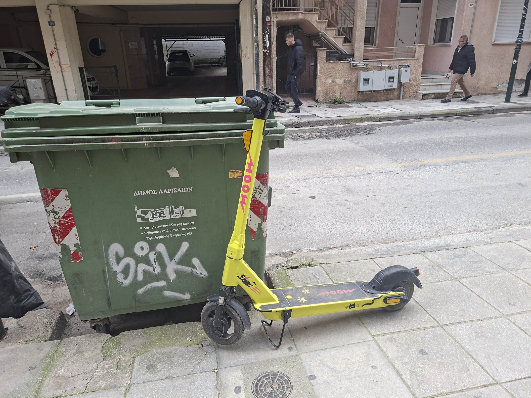 Το thelarissapaper.gr σας ματαφέρει στιγμιότυπα με ηλεκτρικά πατίνια που οι χρήστες τους τα αφήνουν στη μέση του πουθενά: